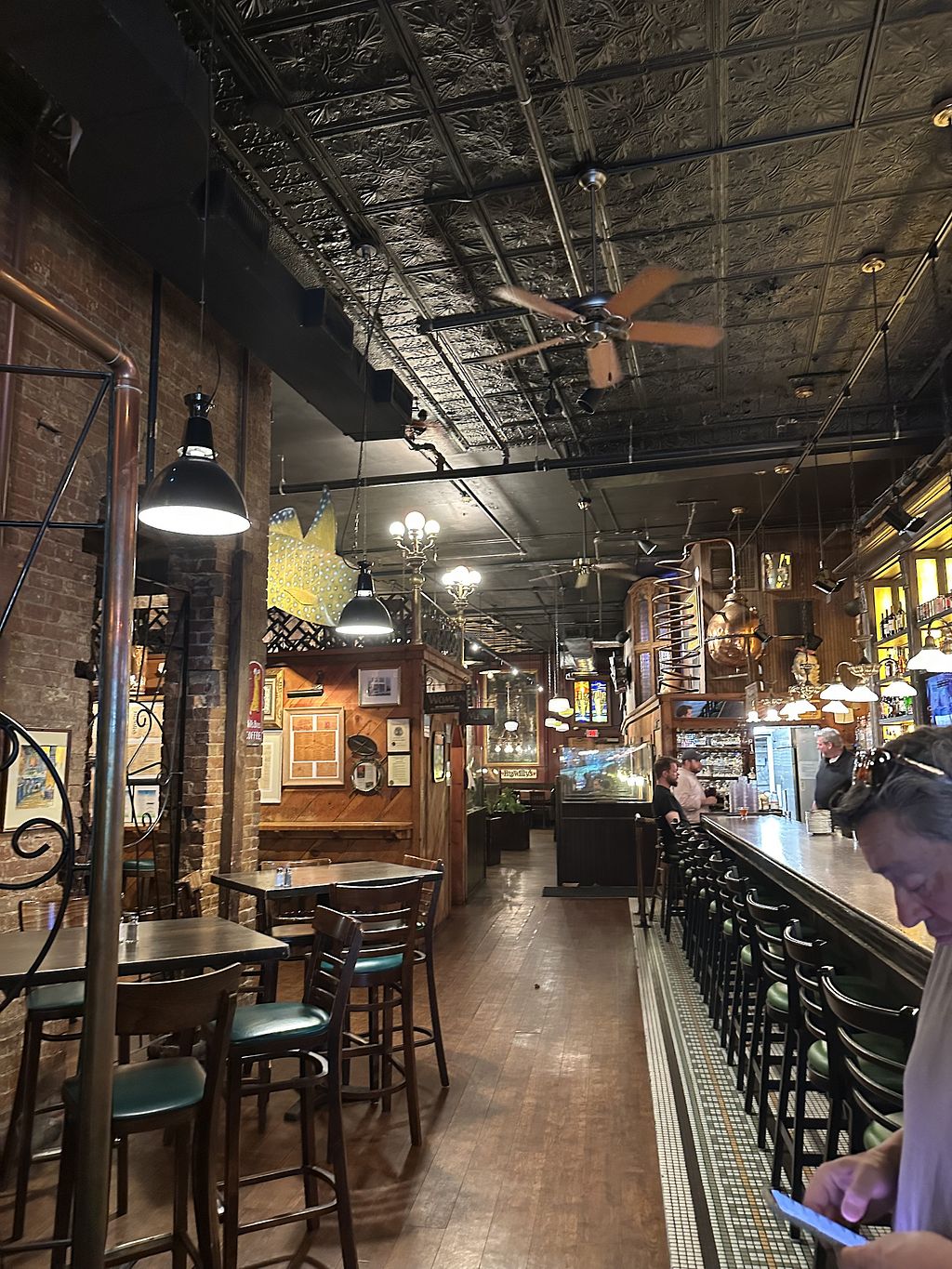 Serves meat, vegan options available. Pub-grub style restaurant and bar with a New England atmosphere. Offers clearly labeled vegan options such as a beyond burger, fries, and salad.