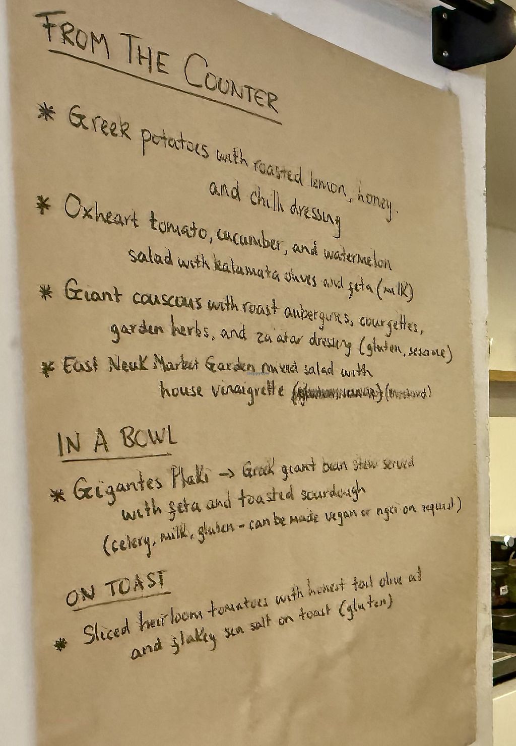 Read moreAll food is vegetarian, with vegan options and things that contain dairy clearly marked.