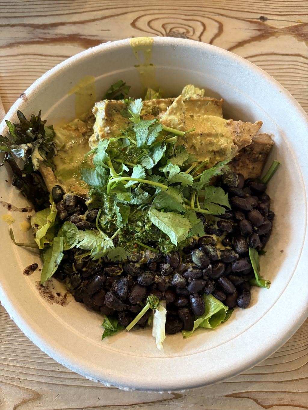 Great options! Bowls! Tofu and fresh veggies. Nice curry and BBQ sauces. A terrific option for vegans and non-vegans.