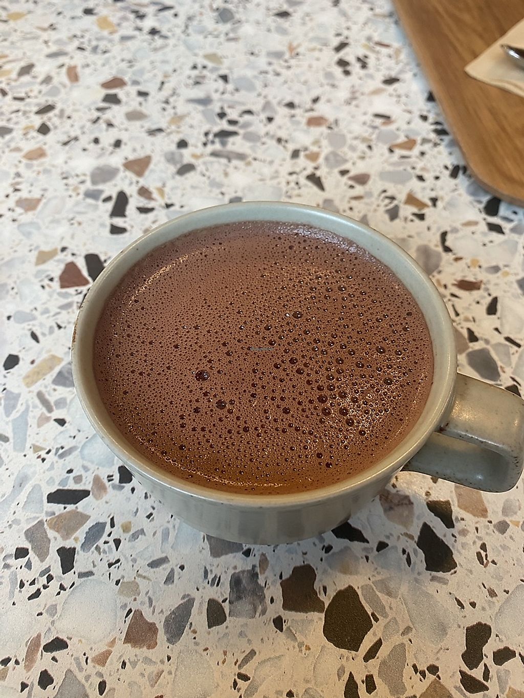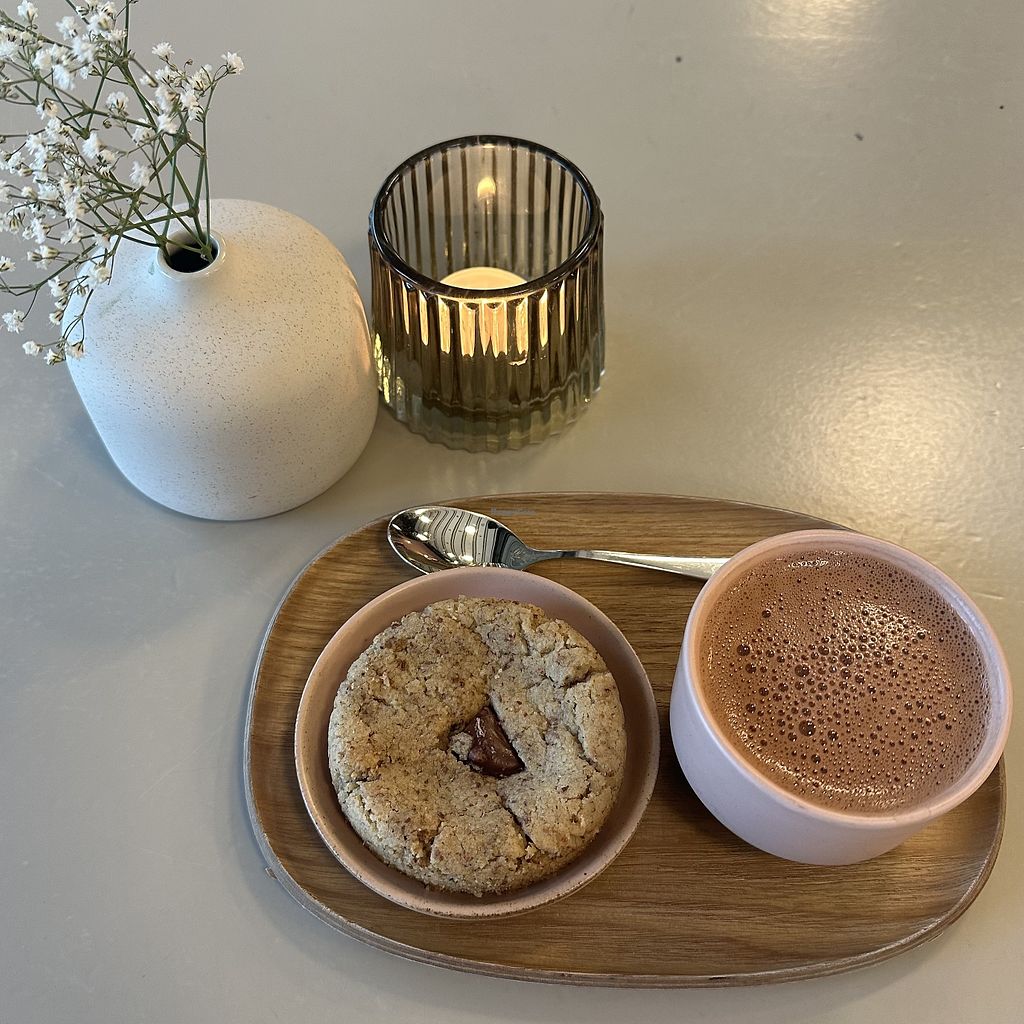 We went there for a sweet afternoon coffee, not a lunch. They only had one kind of vegan cookies and no vegan hot chocolate besides a really heavy and strong 100% one. It was of amazing quality and deep taste, but it was a bit sad, knowing they do sell other vegan hot chocolates in cans, even some flavoured ones.