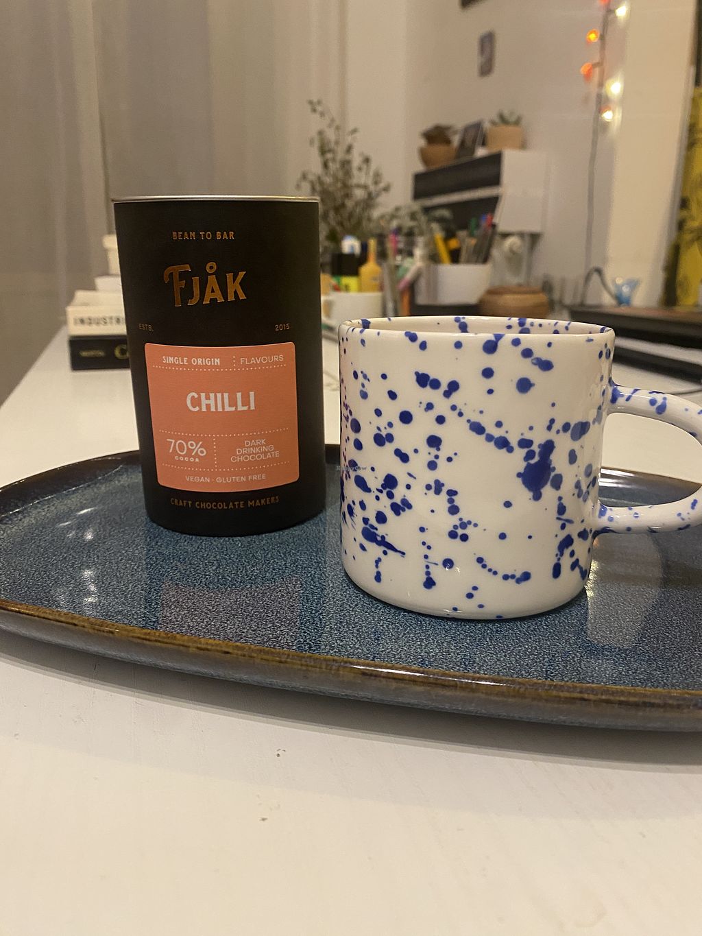 Stopped in to get out of the rain and write some postcards. Not a lot of options, but they did have a cookie that was vegan and gluten free. I loved the Fjåk Special, which is the same amount of coco as a classic hot chocolate, but made with less milk - so, a stronger flavour. You can ask for either hot chocolate to be made with oat milk. [edited]
