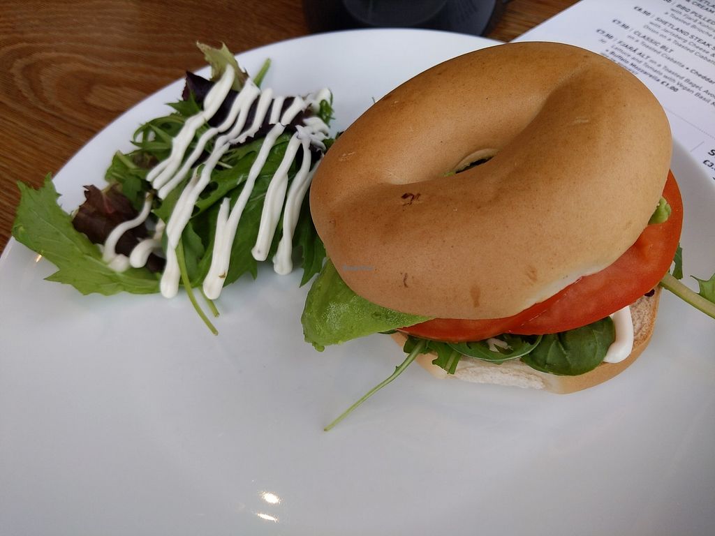 Vegan bagel with tomato, vegan mayo and avocado
