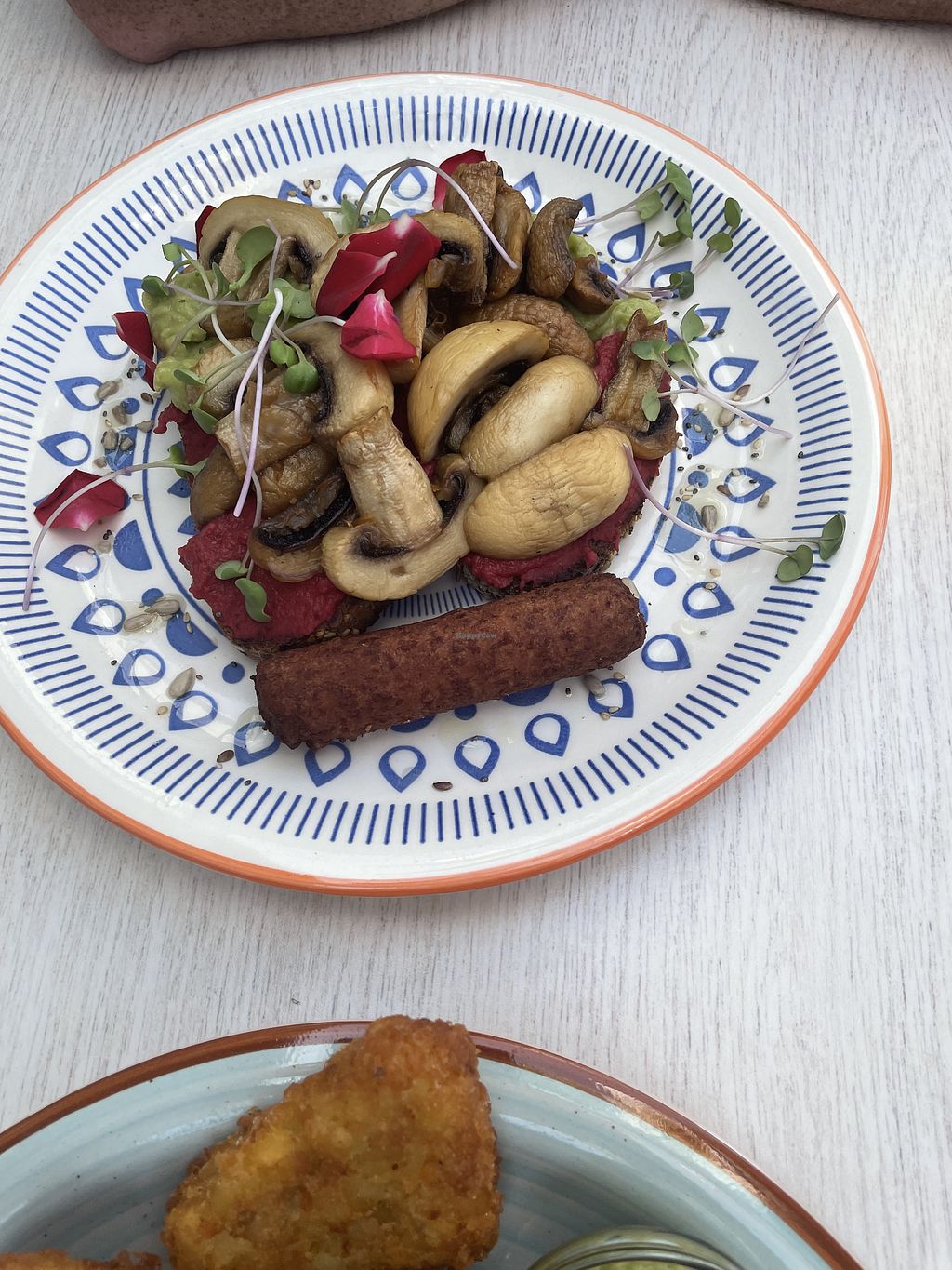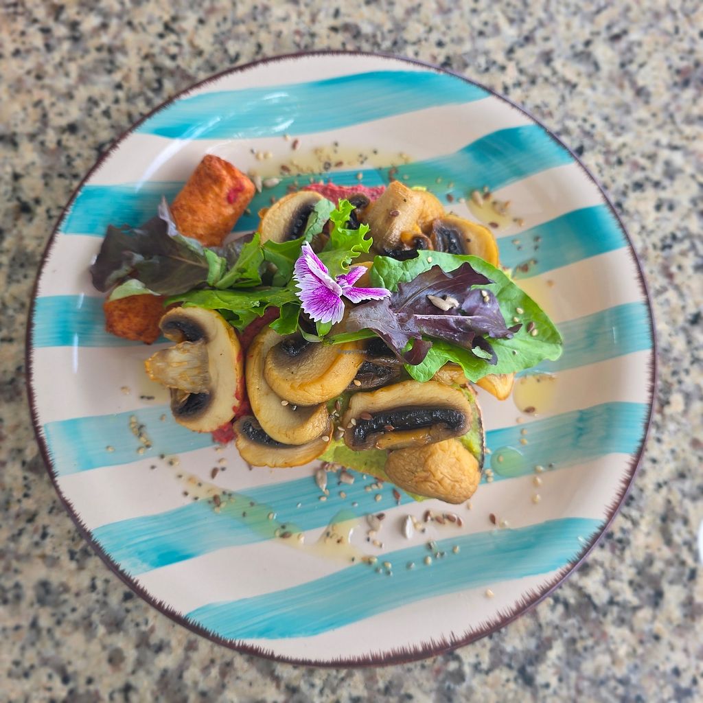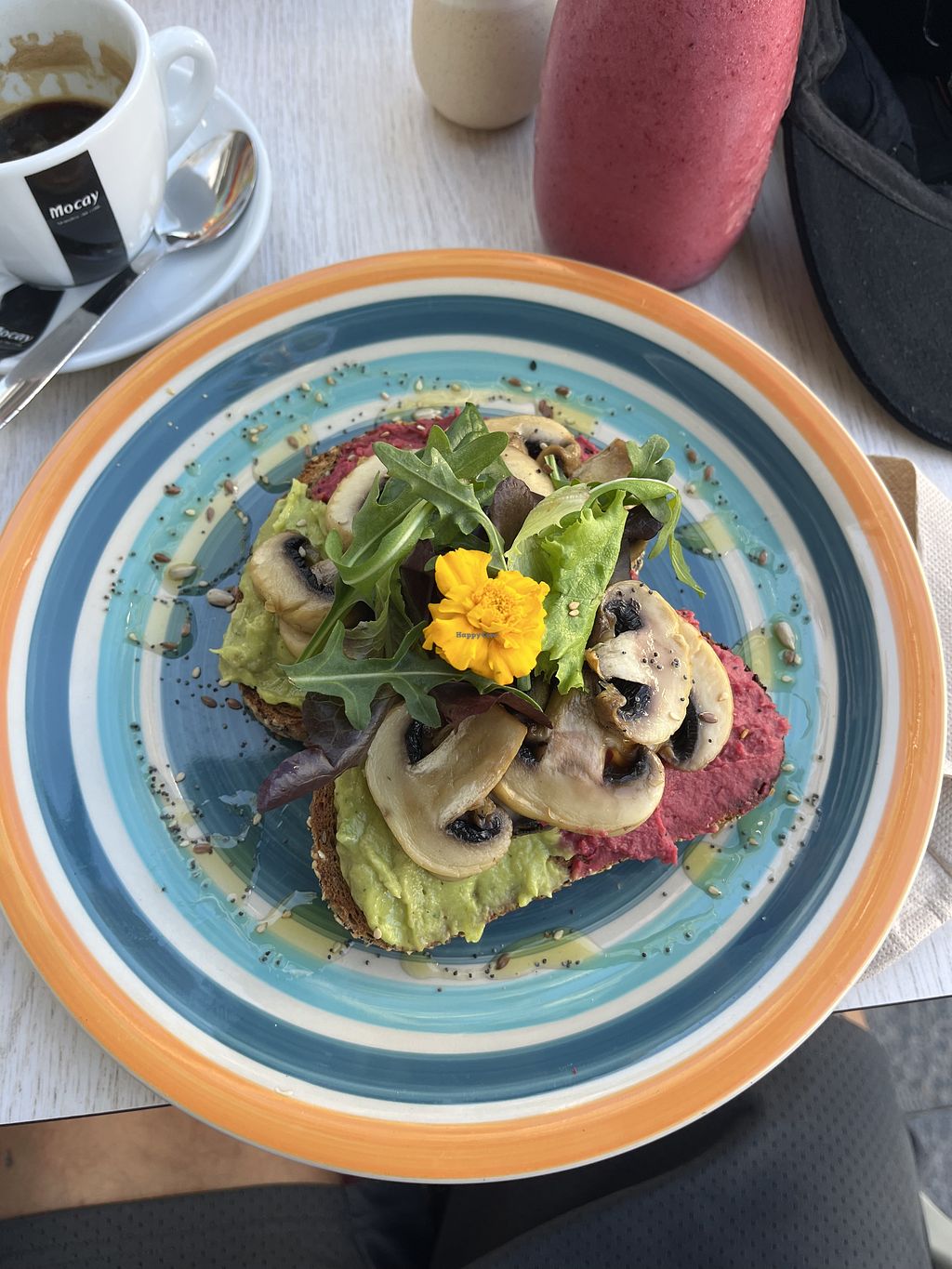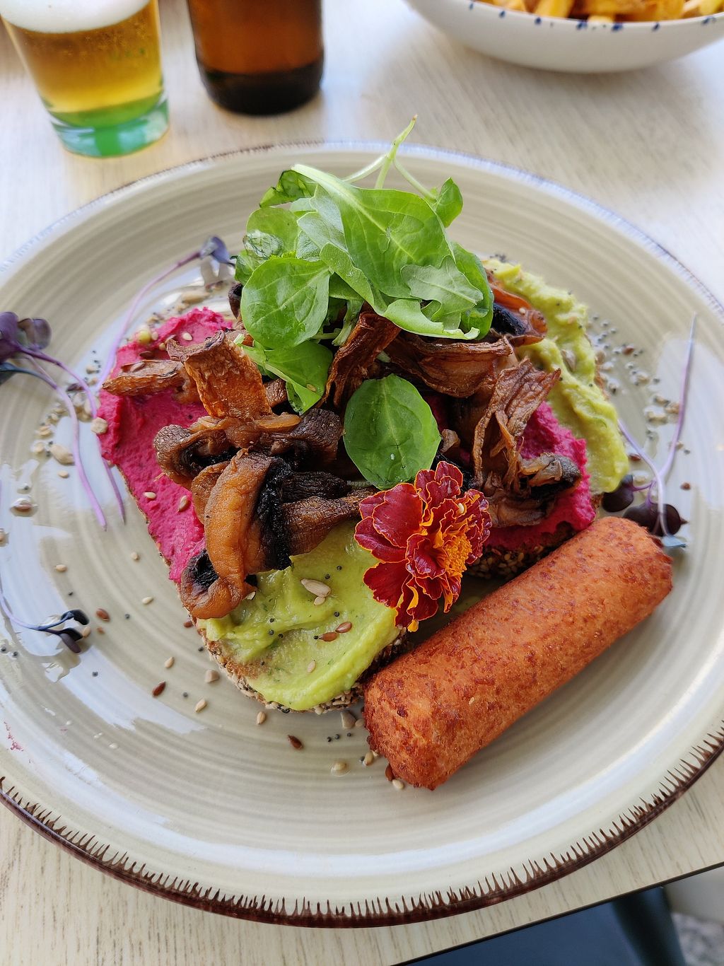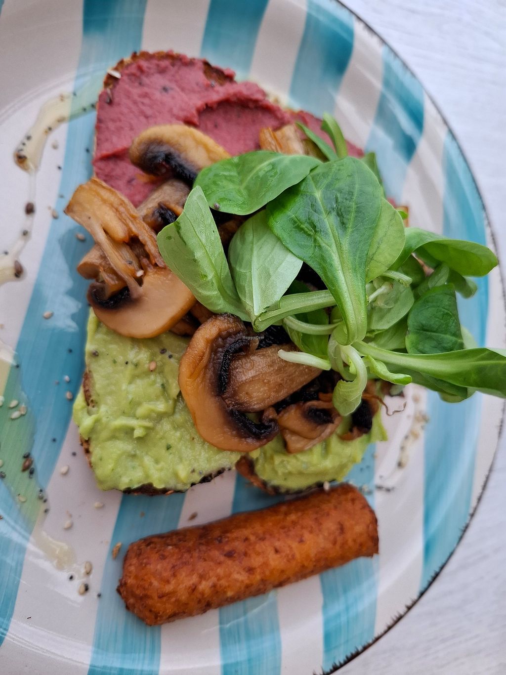Ordered a toast with hummus, avocado and mushrooms, tastes good.