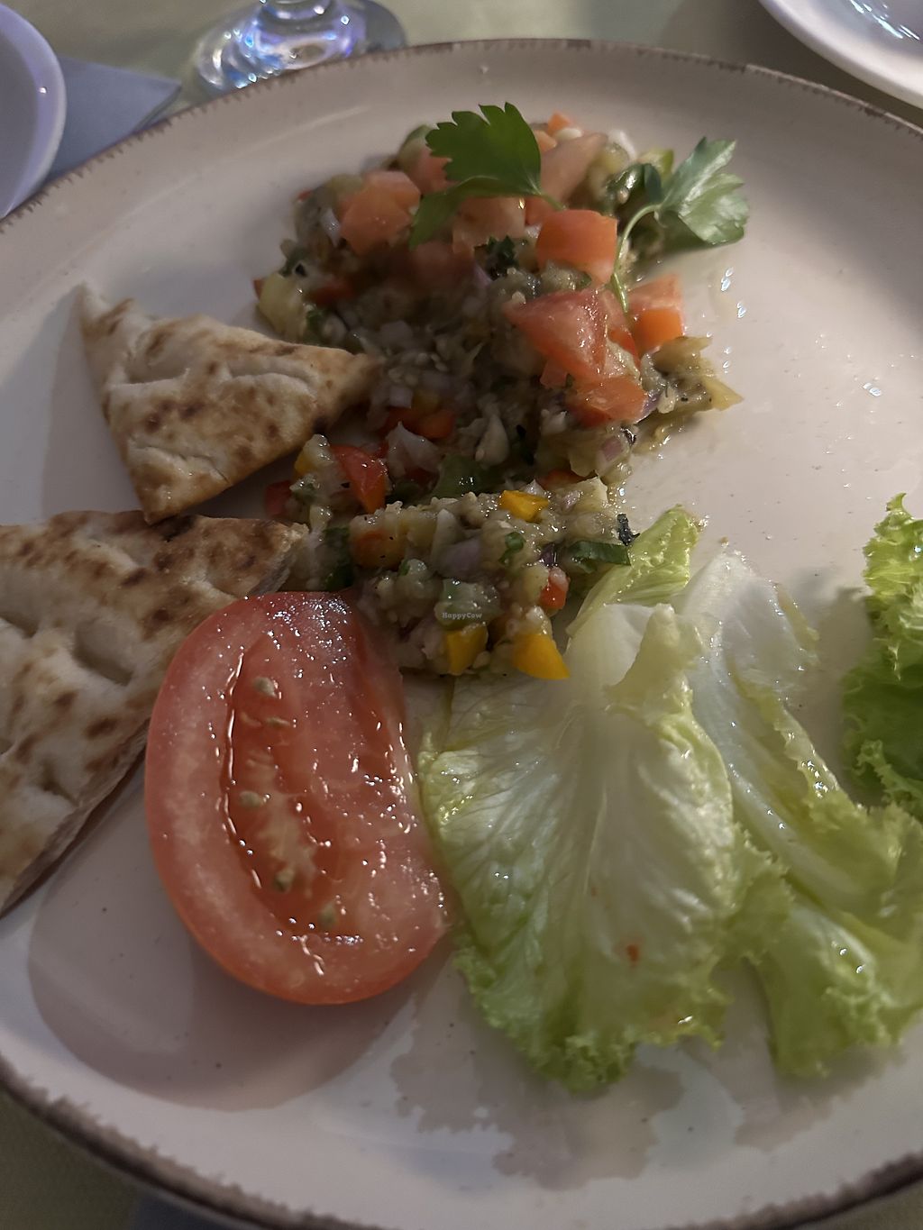Good service and a welcome plate for free (bread, bruschetta, 3 pastes) which was at least vegetarian, not sure if vegan though, so better to check. Separate vegan list with around 10 options. Lots of vegetarian choices also.