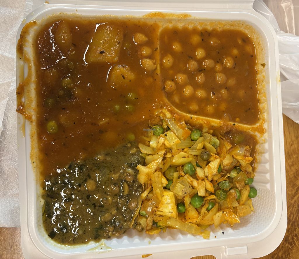 Three Vegetables (Potatoes + green beens, chana masala, and aloo mutteβ¦