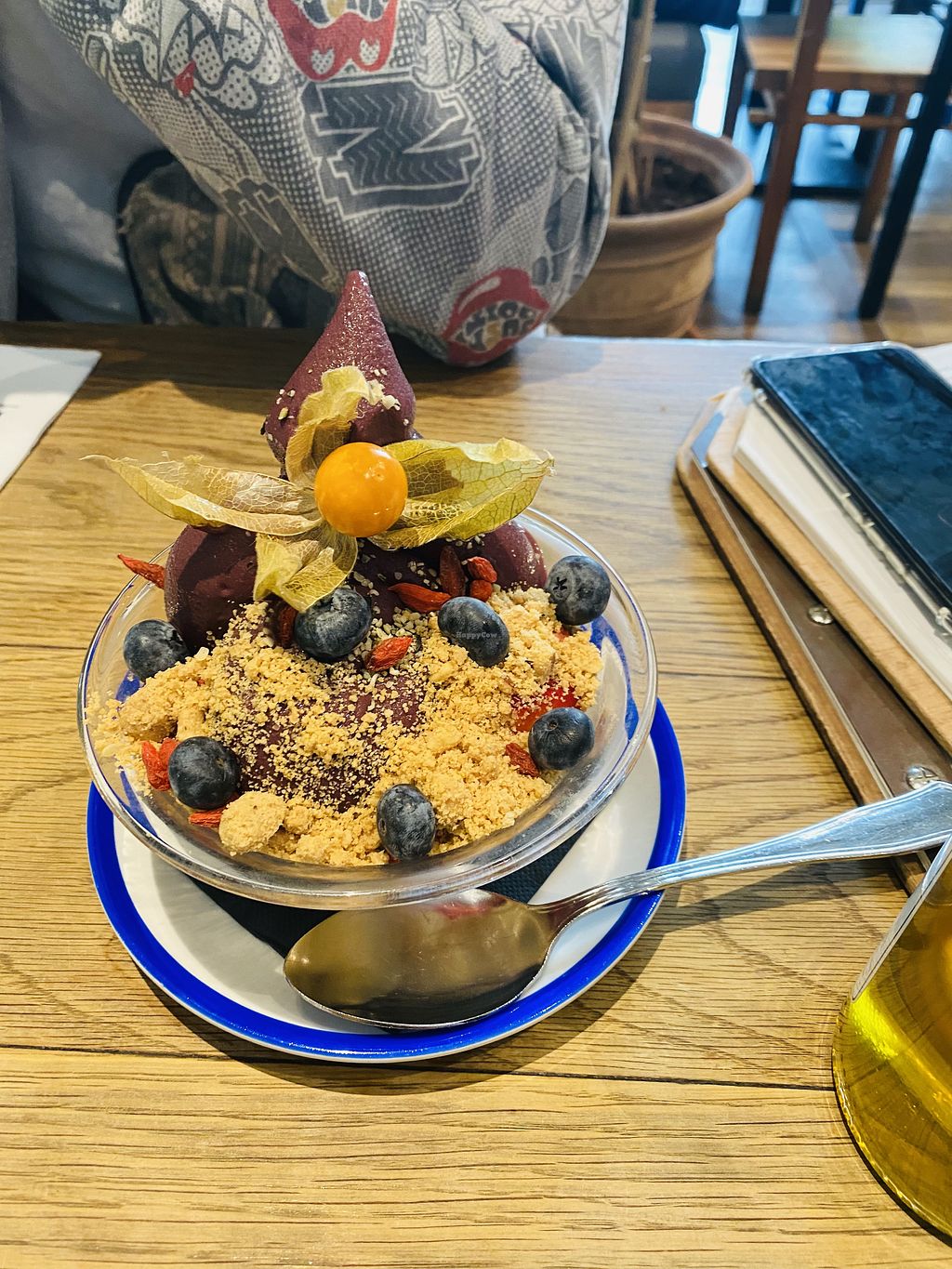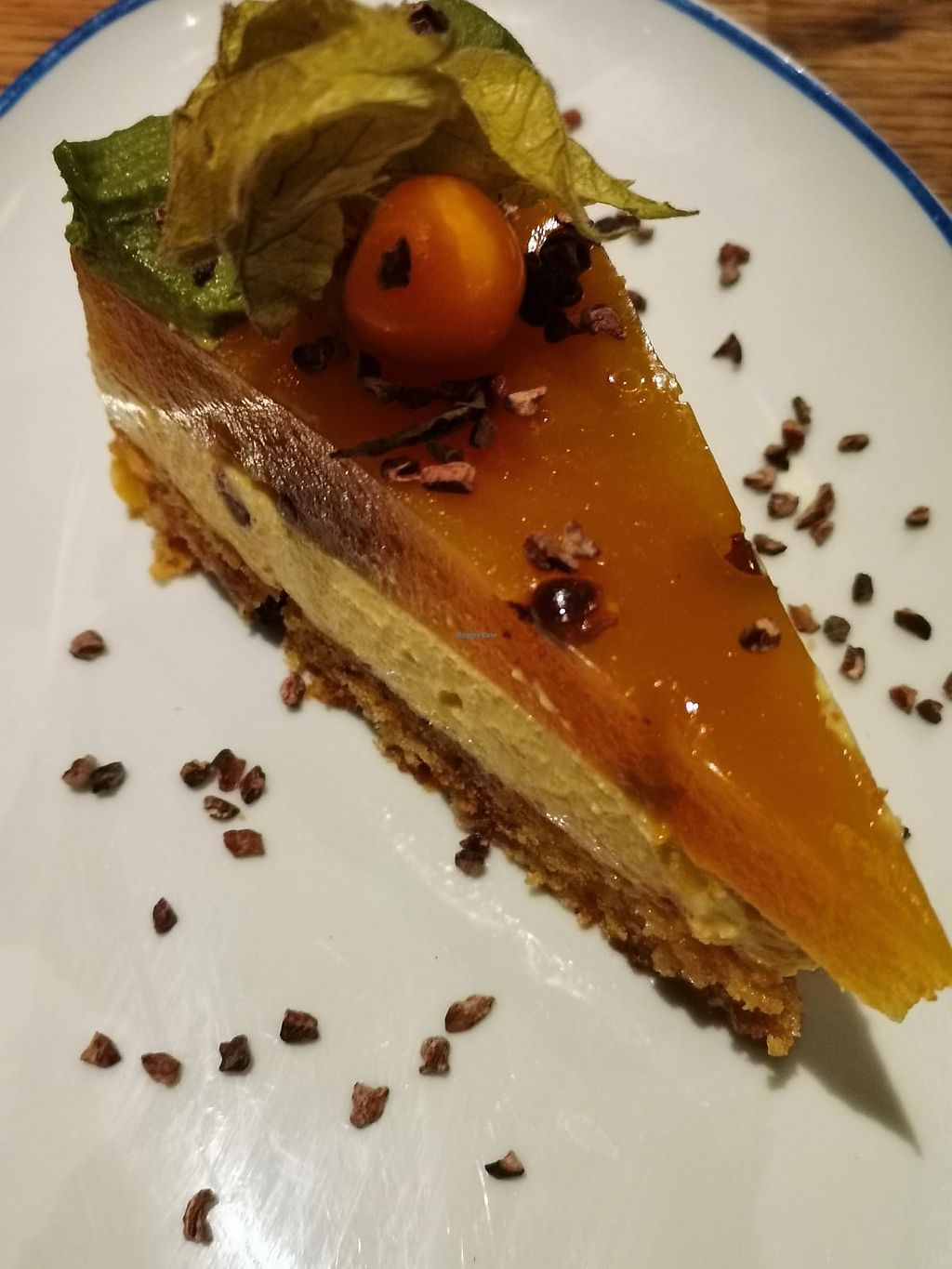 Vegan baked cheese cake. Was kinda weird kinda tasty. Wouldn't order t…