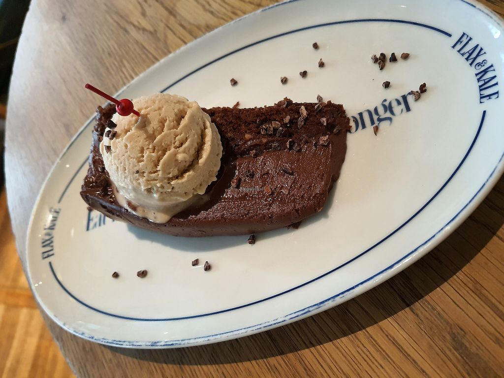 2 layers chocolate cake with hazelnut ice cream - really good!