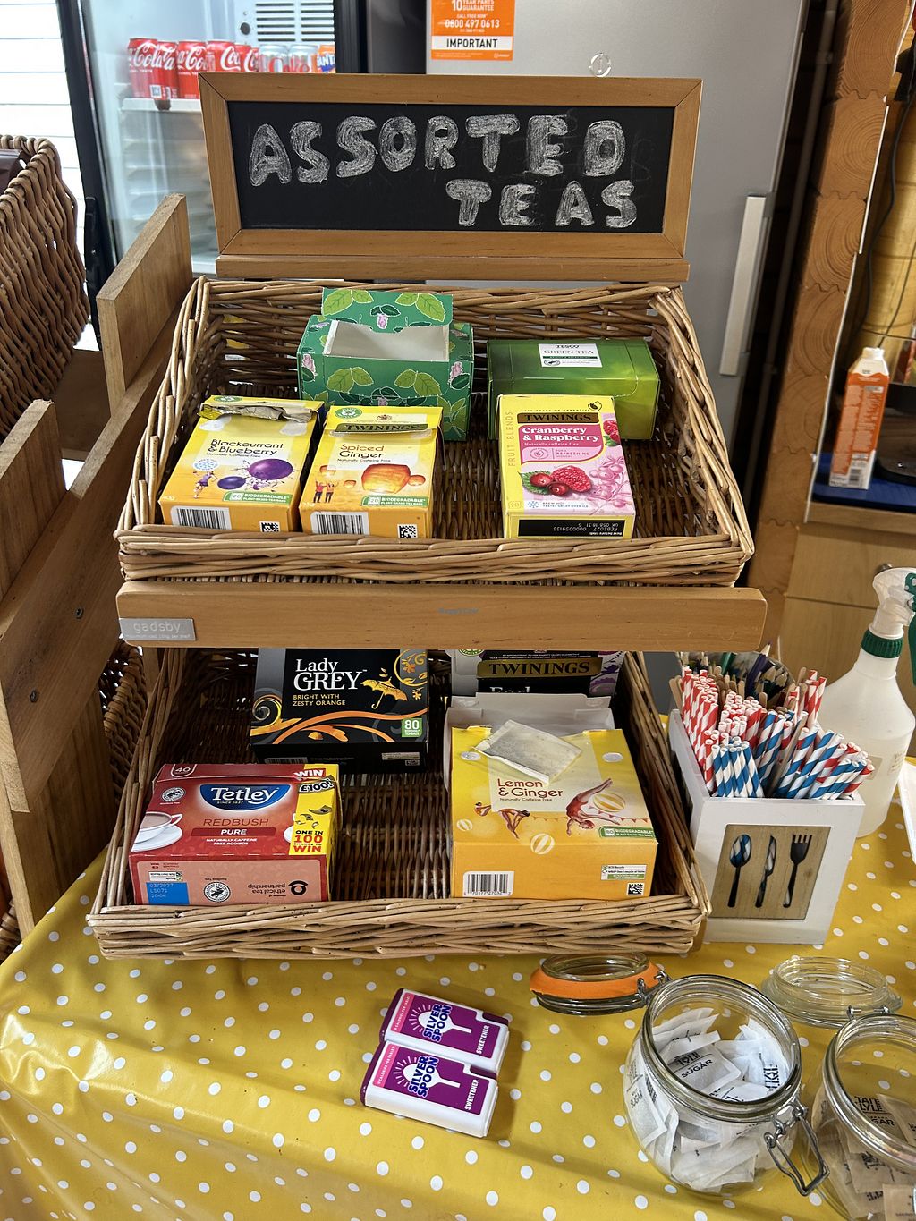 Milk alternatives are available, plus vegan crisps & cakes.