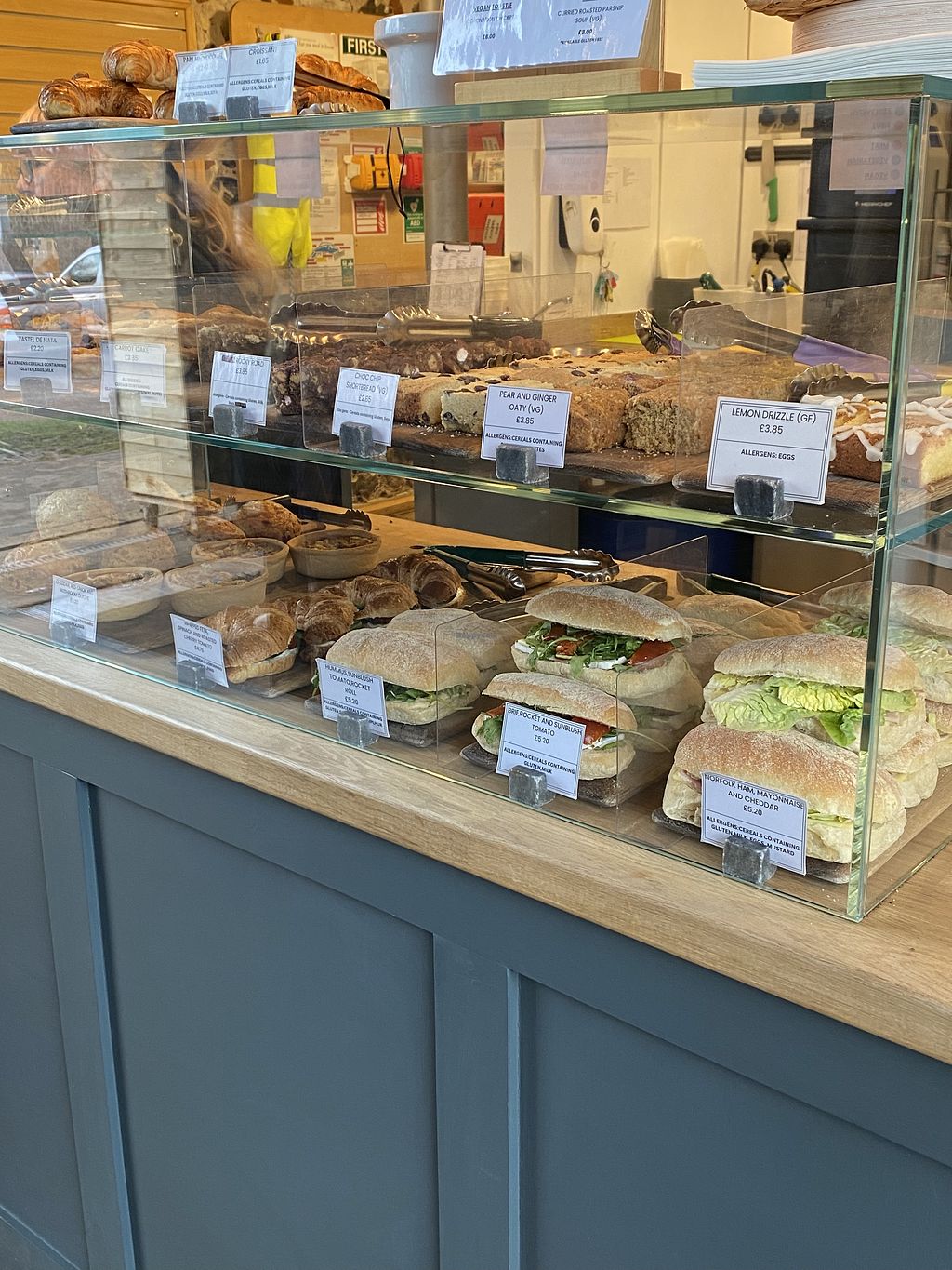 Lovely coffee with different plant based milk options plus several cake and lunchy bits to choose from
