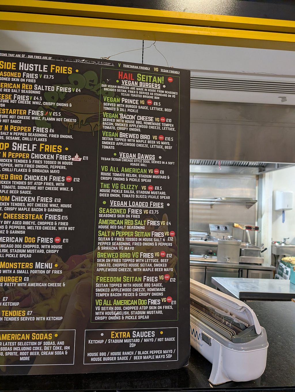 Serves meat, vegan options available. Burger & hot dog stall located within Abingdon Street Market. Has a vegan/vegetarian menu with clearly labeled vegan burgers, hot dogs and fries. Dog-friendly. Open Mon-Thu 12:00-20:00, Fri-Sat 12:00-21:00, Sun 12:00-20:00.