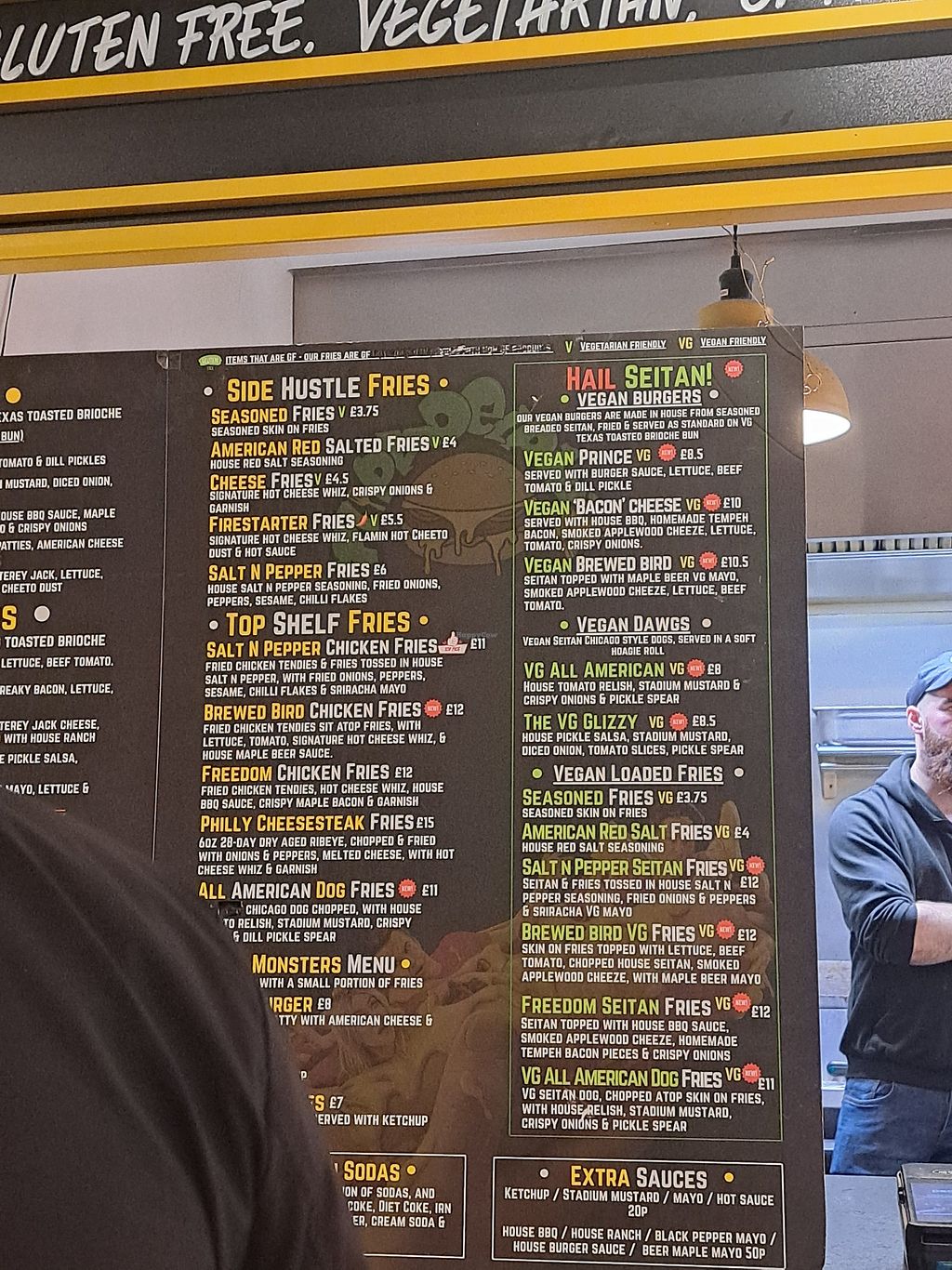 Read moreIt’s in a big hall that used to be the old market. There are places that sell drinks and other food vendors too. Good place to meet up with friends. I went in the day but could see they also do live music. We had hot dog and fries but they did burgers too. Not vegan but the menu is clearly labelled with their vegan options.