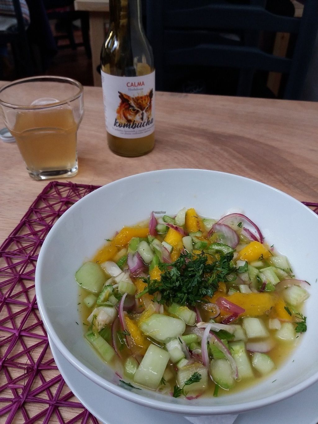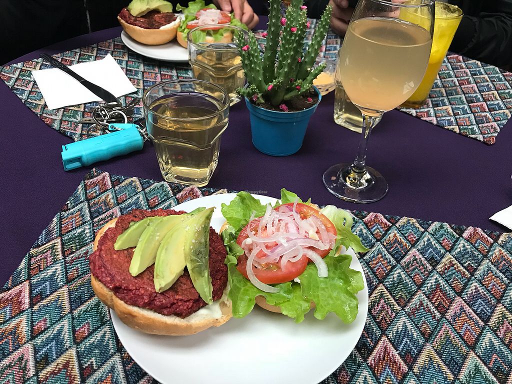 My burger with my tea and kumbucha
