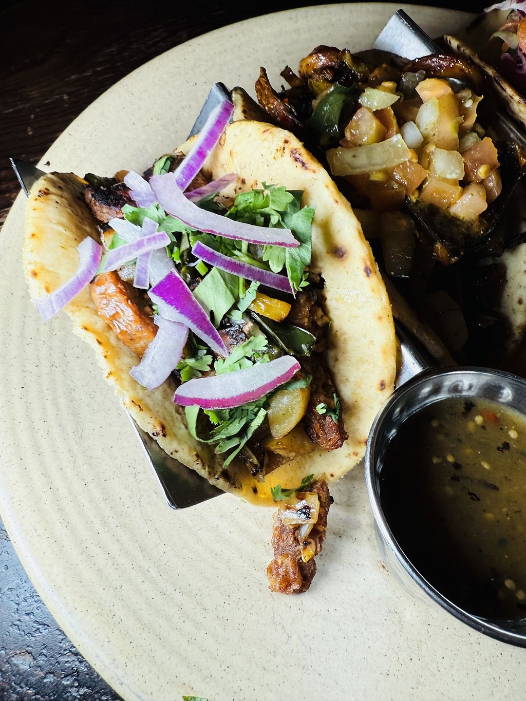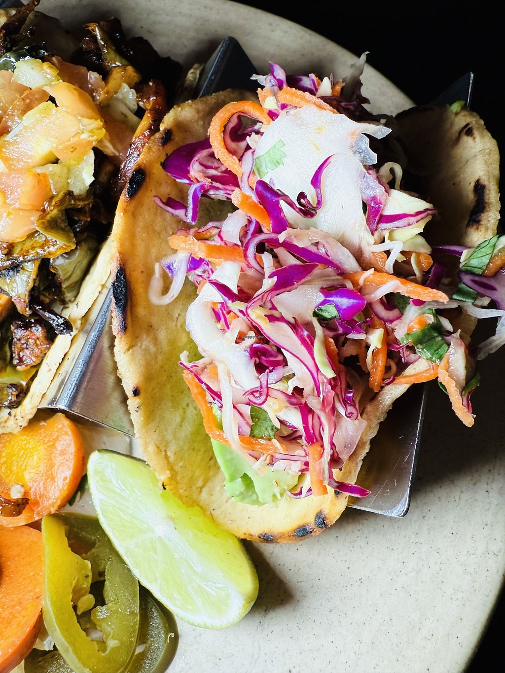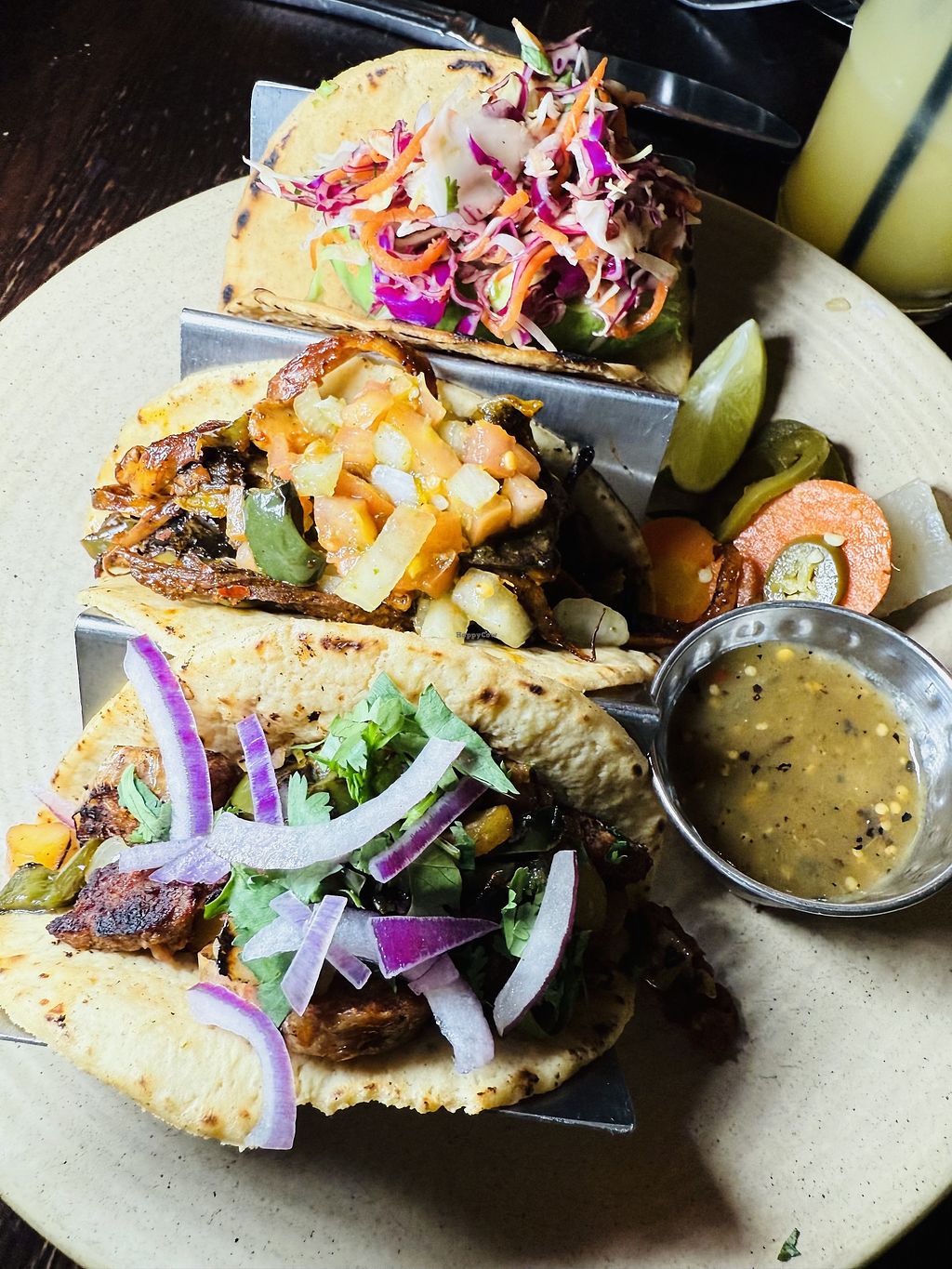 Good food. 3 vegan taco plate is great. Menu should make it clear that it is 3 different types of vegan tacos! Which is a good thing.