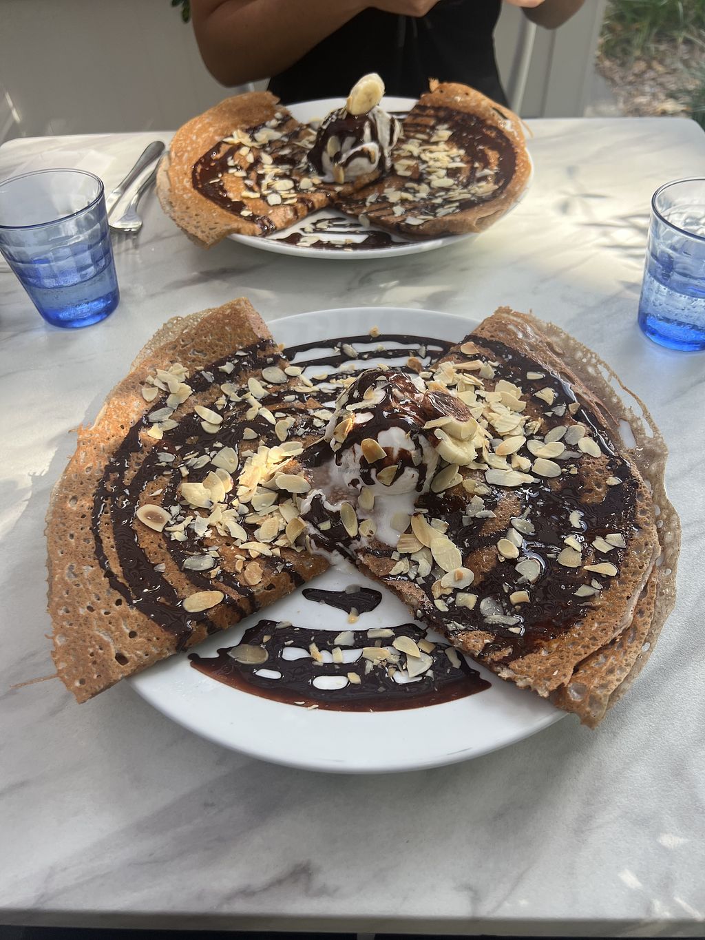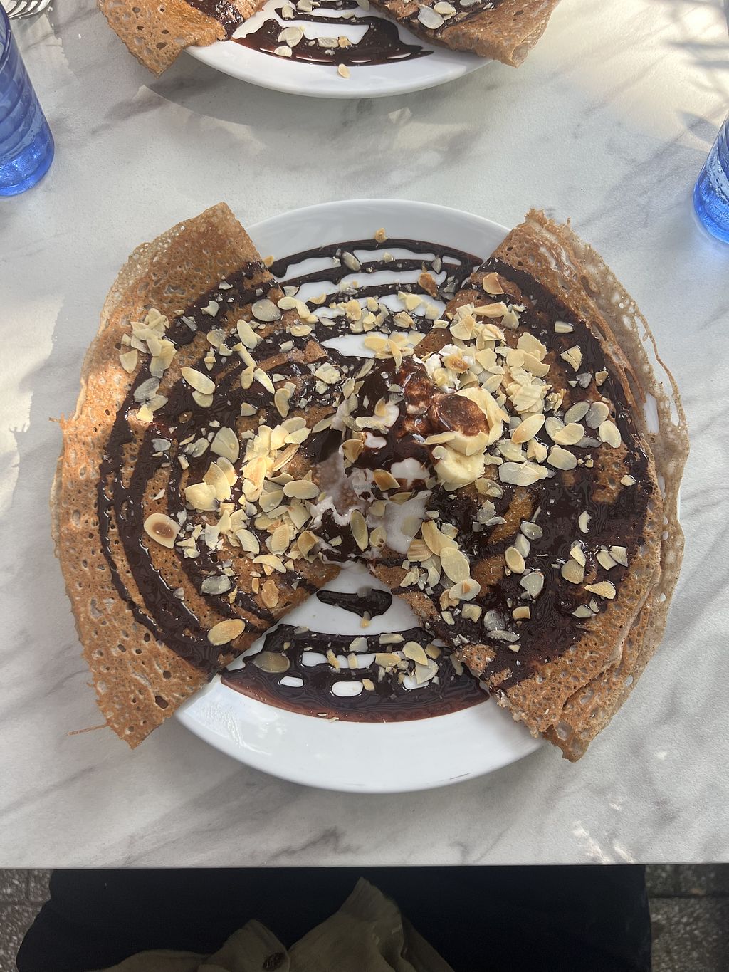 Crêpe - Chocolate sauce, banana, grilled almonds & Vegan ice cream 😍 (…