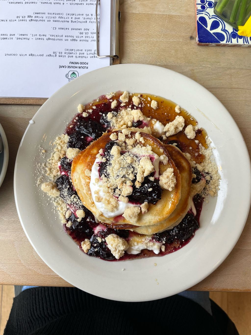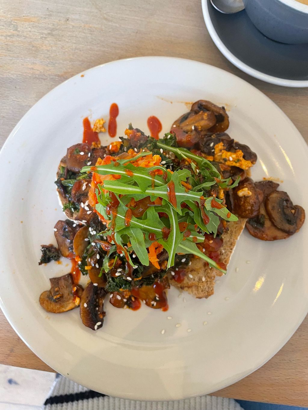 The four house has lots of lovely vegan brunch options including pancakes, full English. I had the mushrooms on toast with whipped tofu and it was beautiful.