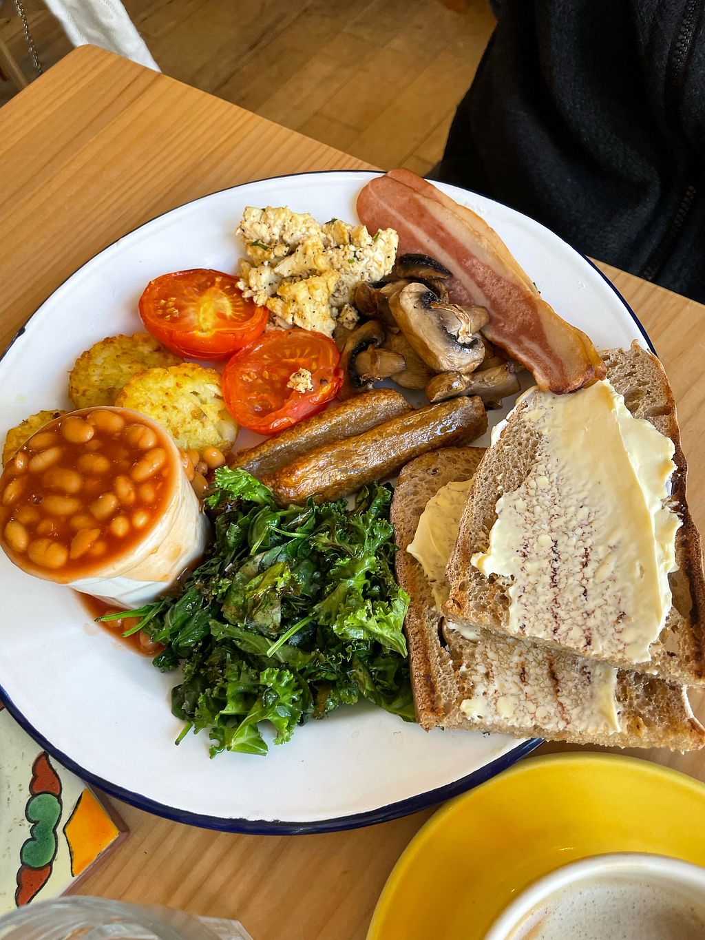 Great vegan English brekkie! Pretty much all menu items are available as vegan option so plenty to choose from (pancakes, sandwiches, toasties, vegan cookies, cakes, etc).