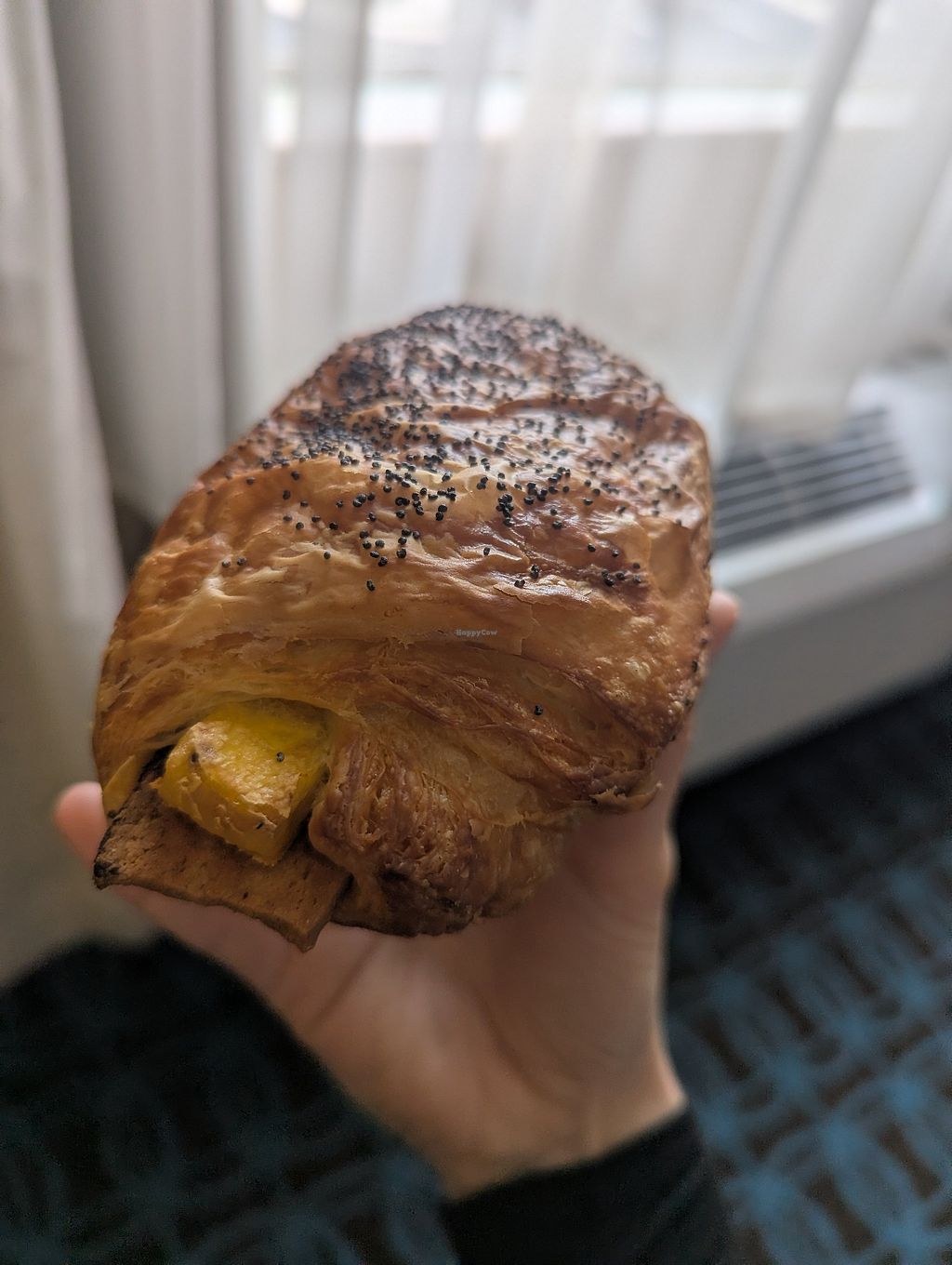 Vegan bacon, egg, and cheese croissant