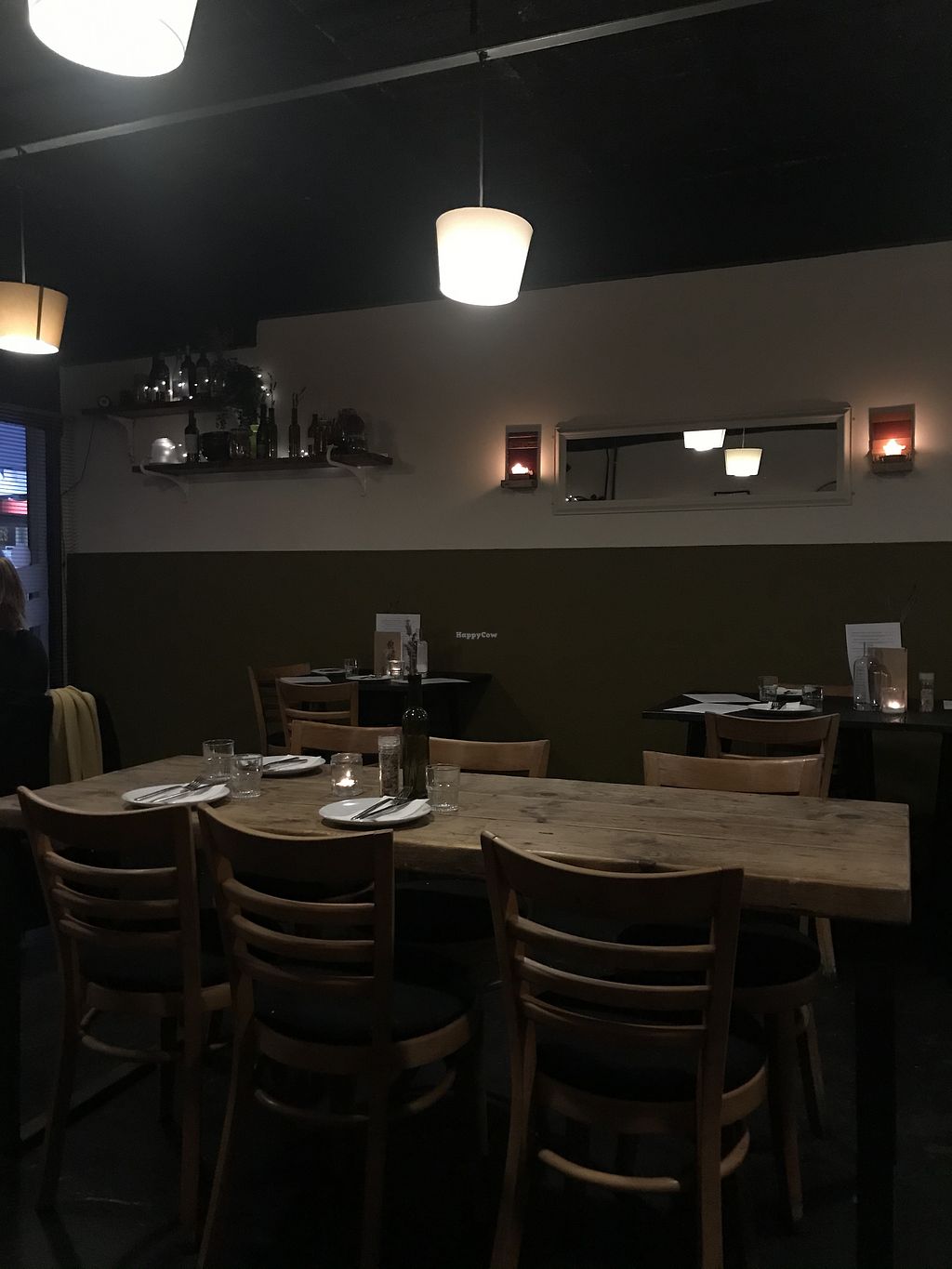 I booked this restaurant for a work do and it did not disappoint, even for the non-vegetarians . We shared a lot of the small plates and they were really inventive and tasty. I was a bit disappointed there weren't more vegan options on the menu but several of them could be made vegan. The chocolate cake with blackberry sauce was gorgeous. I've taken off one star because the service was quite slow even though it wasn't busy and because they didn't manage to provide vegan spread instead of butter, despite me asking, which is disappointing.