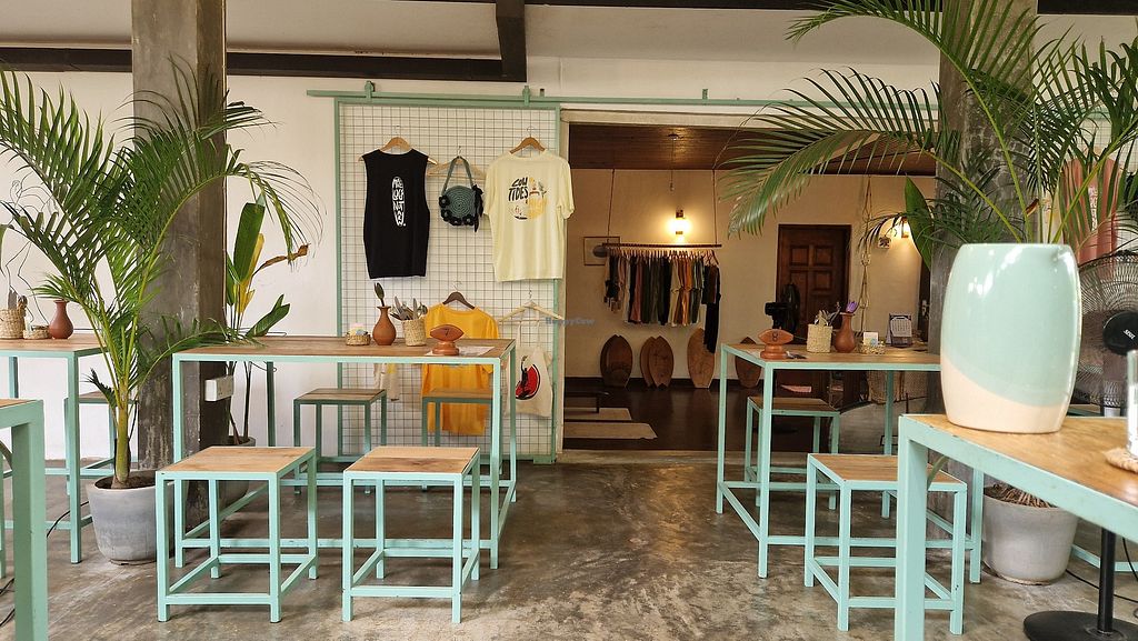 Serves meat, vegan options available. Surfing accommodation and restaurant. Restaurant offers bowls, toasts, bagels, and plant milk for vegan drinks. Open Mon-Sun 7:30am-3:00pm.