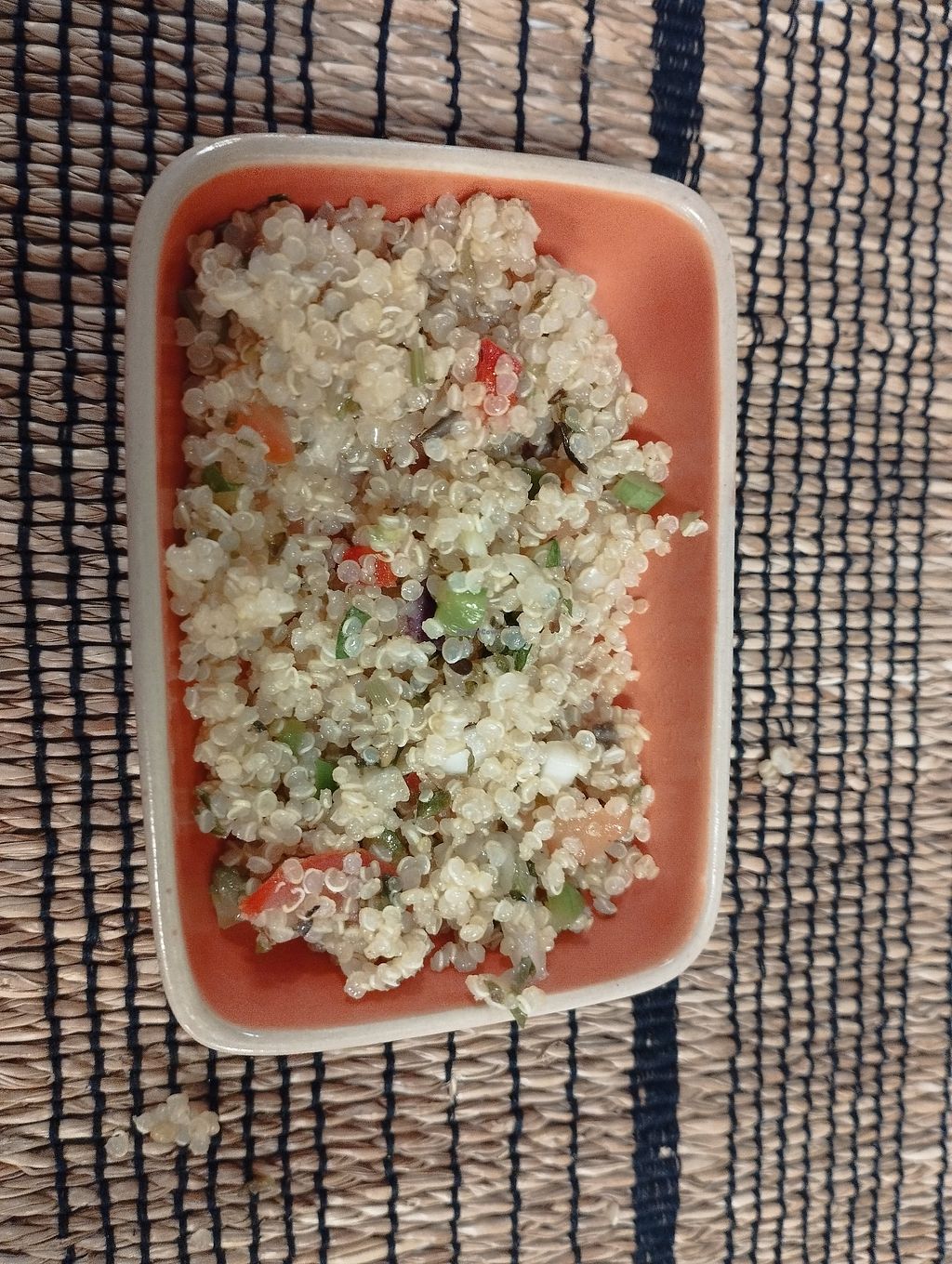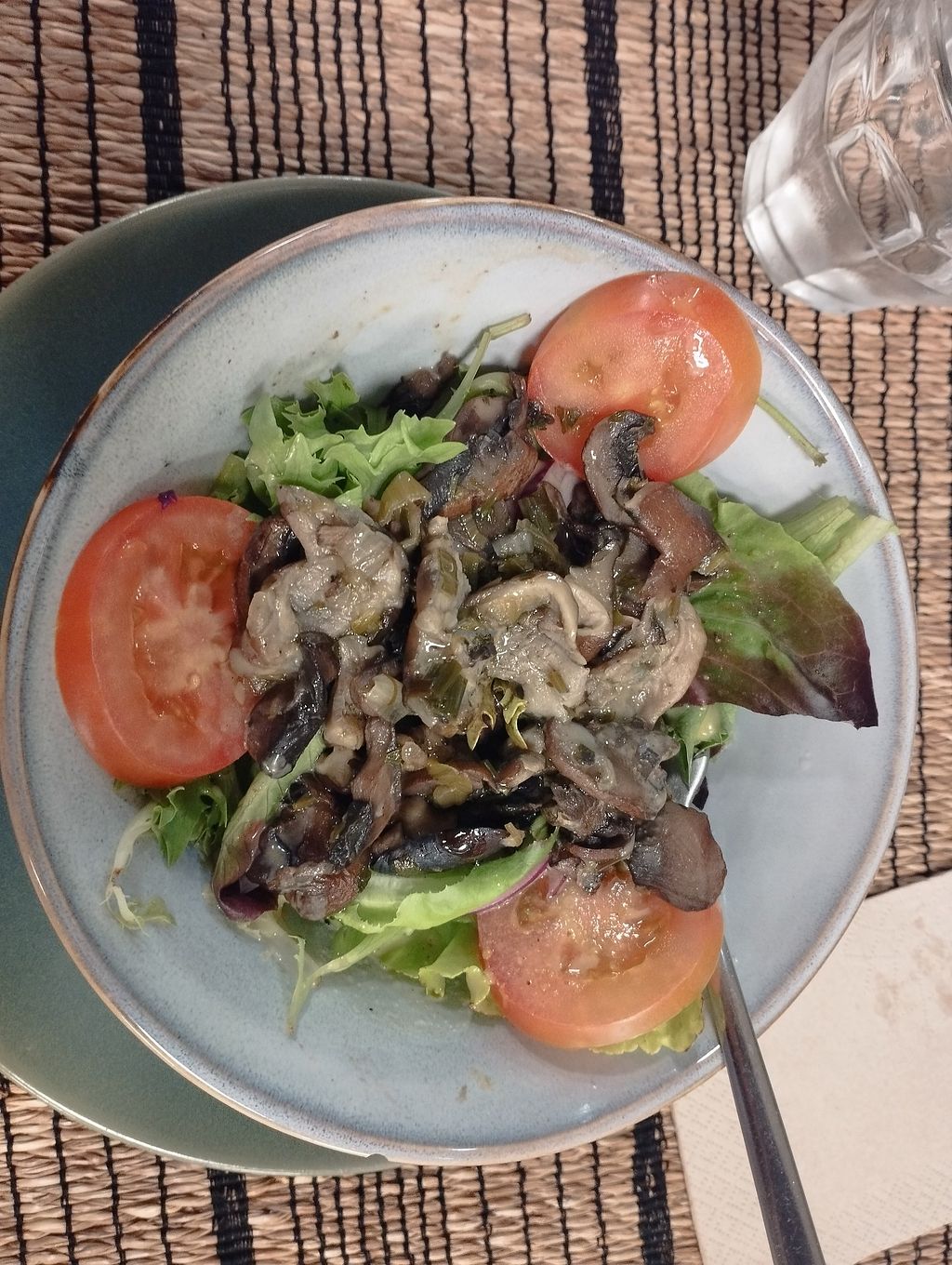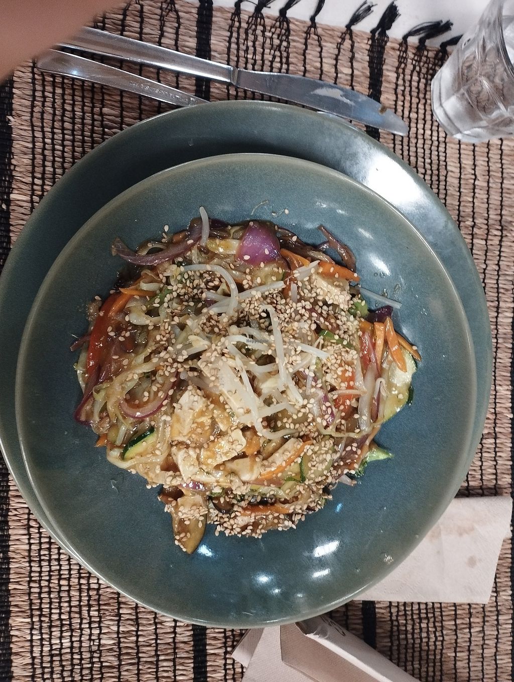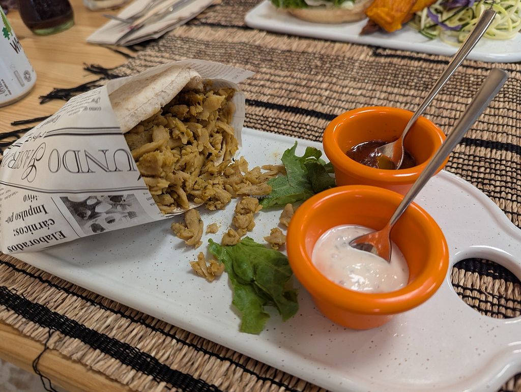 Kebab vegano , tiras de soja y trigo , también tiene verduras debajo d…