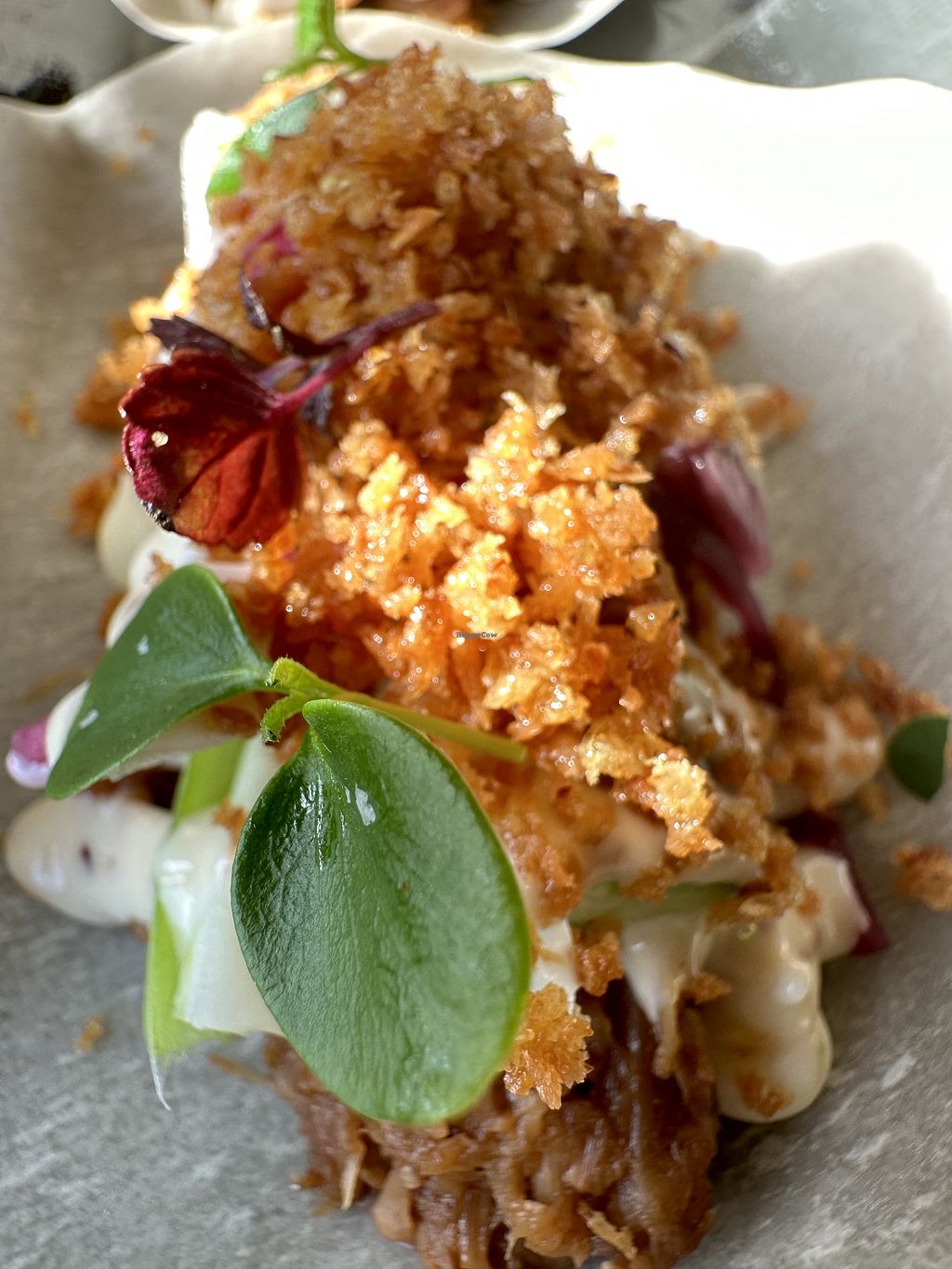 Read moreUnser Aufenthalt in Delft überschnitt sich zufälligerweise mit dem Event bei Flow: Samstag und Sonntag sollte es auf Bestellung ein 5-Gänge Menü geben. Für uns keine Frage: nachgefragt, ob das Menü in dem vegetarischen Restaurant auch vegan zu haben sein wird und reserviert. Ab 18:30 sollte man eintreffen, ab 19:00 ging es dann los. Vorab gab es zwei Runden Gruß aus der Küche, der Aperitif war mit und ohne Alkohol zu haben. Ein Blick auf die vegetarische Menüfolge sorgte für kurze Irritation, tauchten da doch Zutaten auf, deren Verwendung dazu geführt hätte, die Gerichte a la carte eher nicht zu bestellen. Die Bedenken waren unnötig: jeder Gang war sehr lecker, die Geschmackskomponenten großartig ausbalanciert. Am Ende des Abends waren wir satt, ohne überfüllt zu sein, und glücklich.