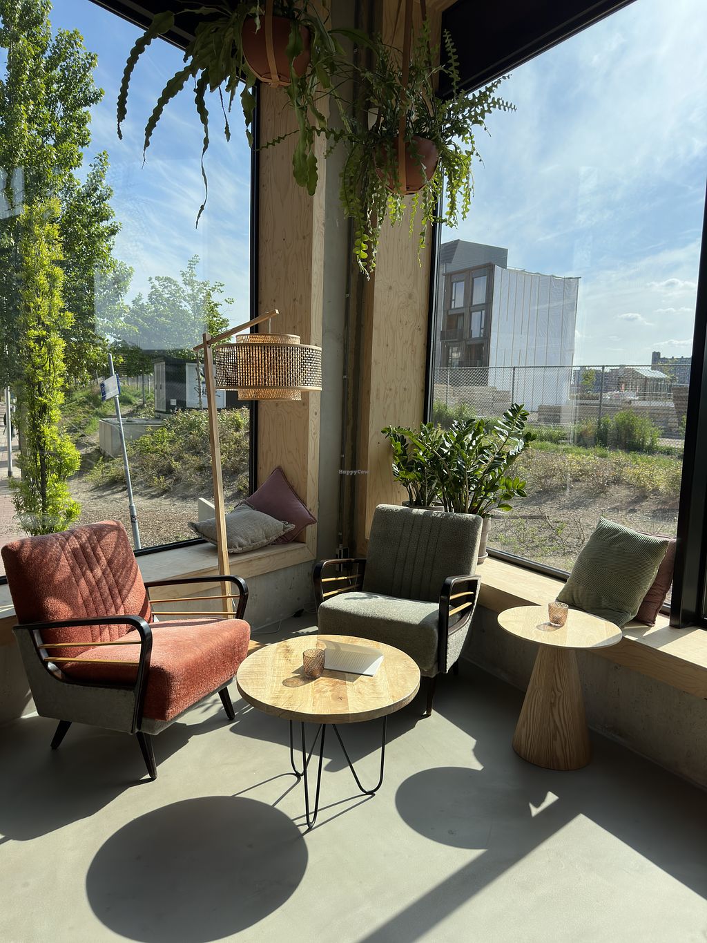 Ik vond de plek zelf een beetje scandinavisch aan doen. Veel hout, lekker ruim. Leuke plek met wat groen er omheen. Ook als je hier lekker even wilt werken is er genoeg keuze om lekker even te zitten.