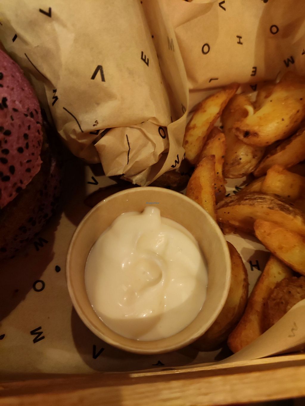Burger with fries and extra mayonnaise