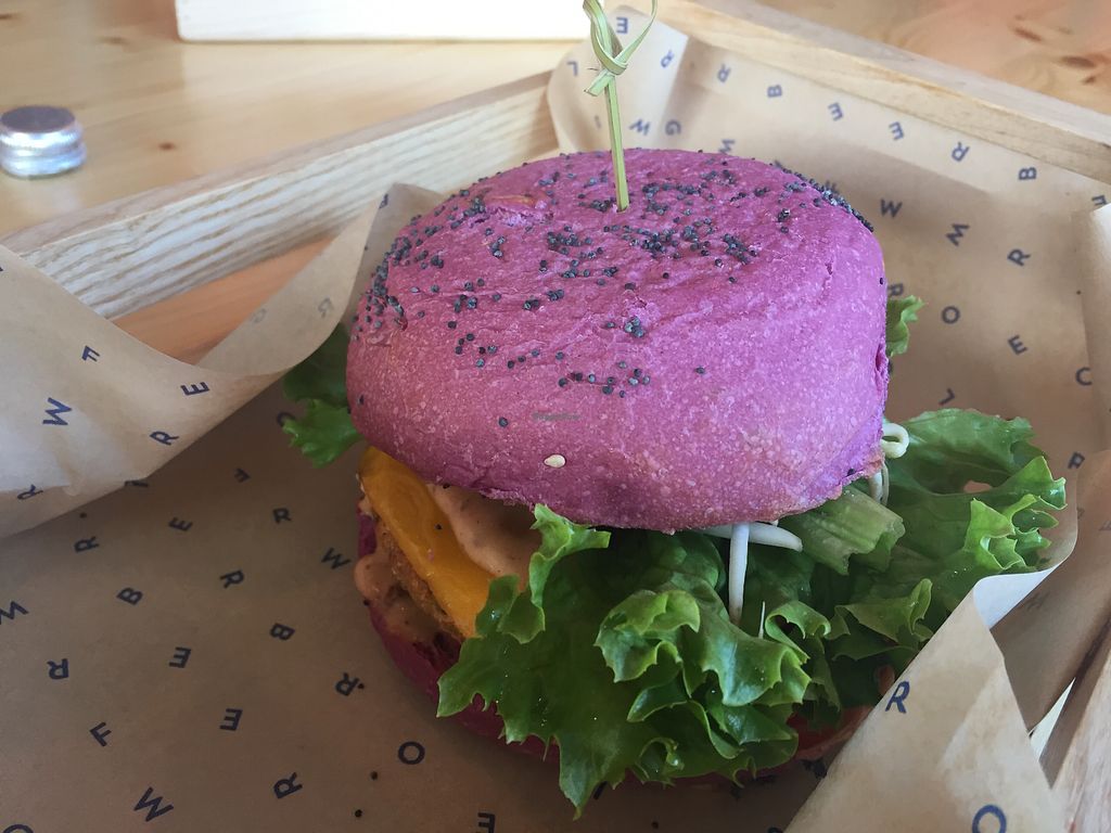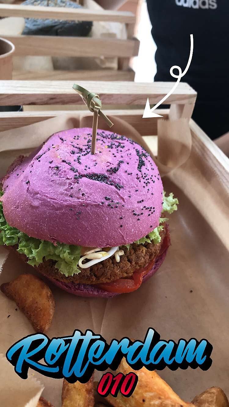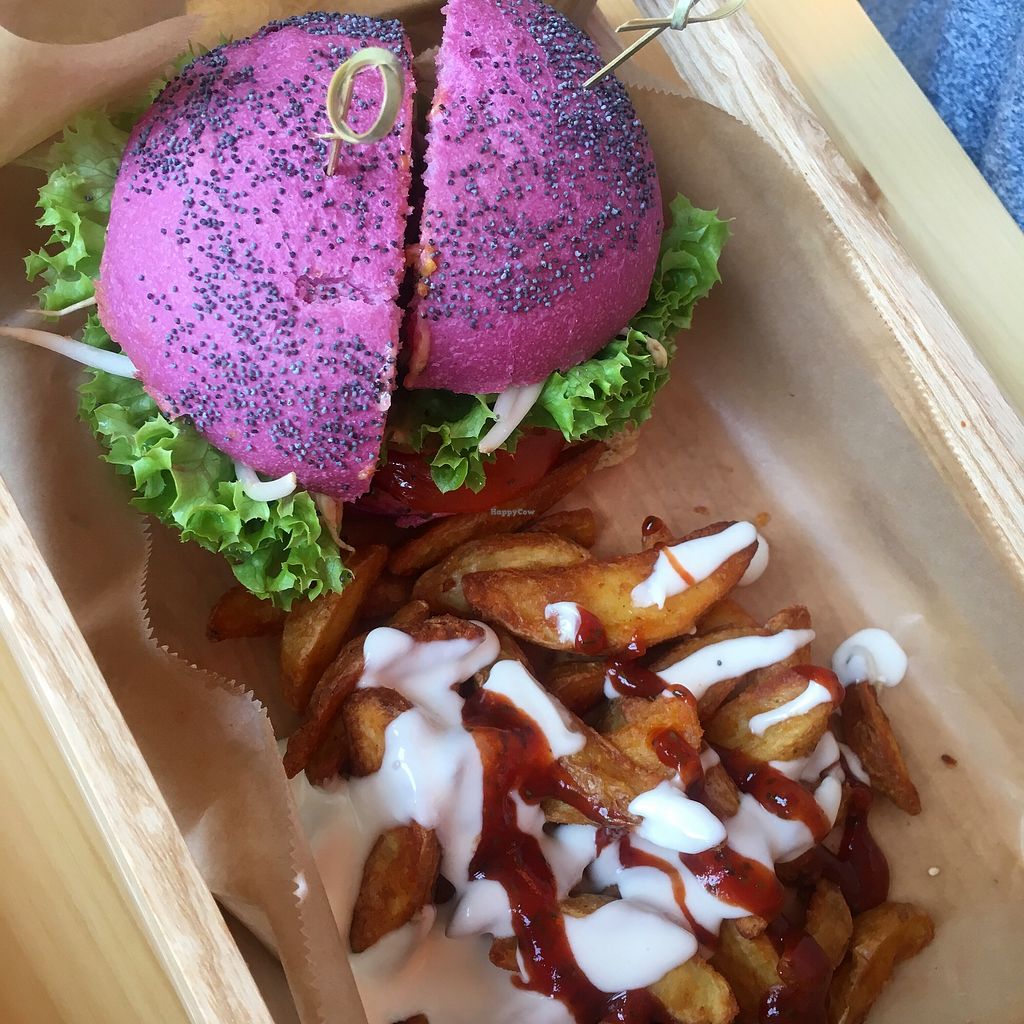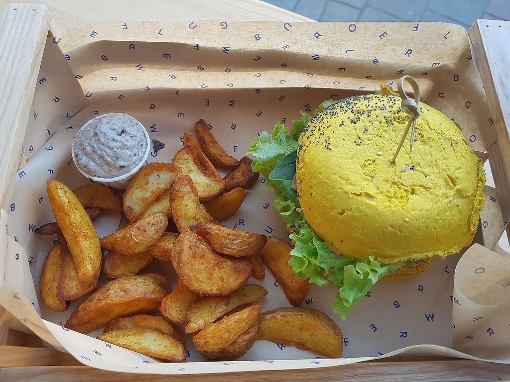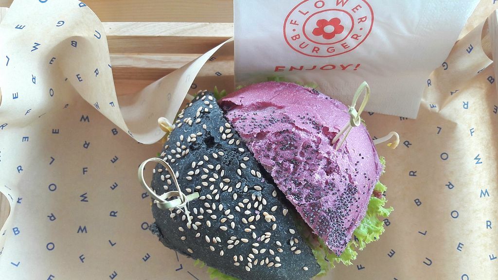 Flower burger with savory potatoes + flower mayo (really delicious!) aβ¦