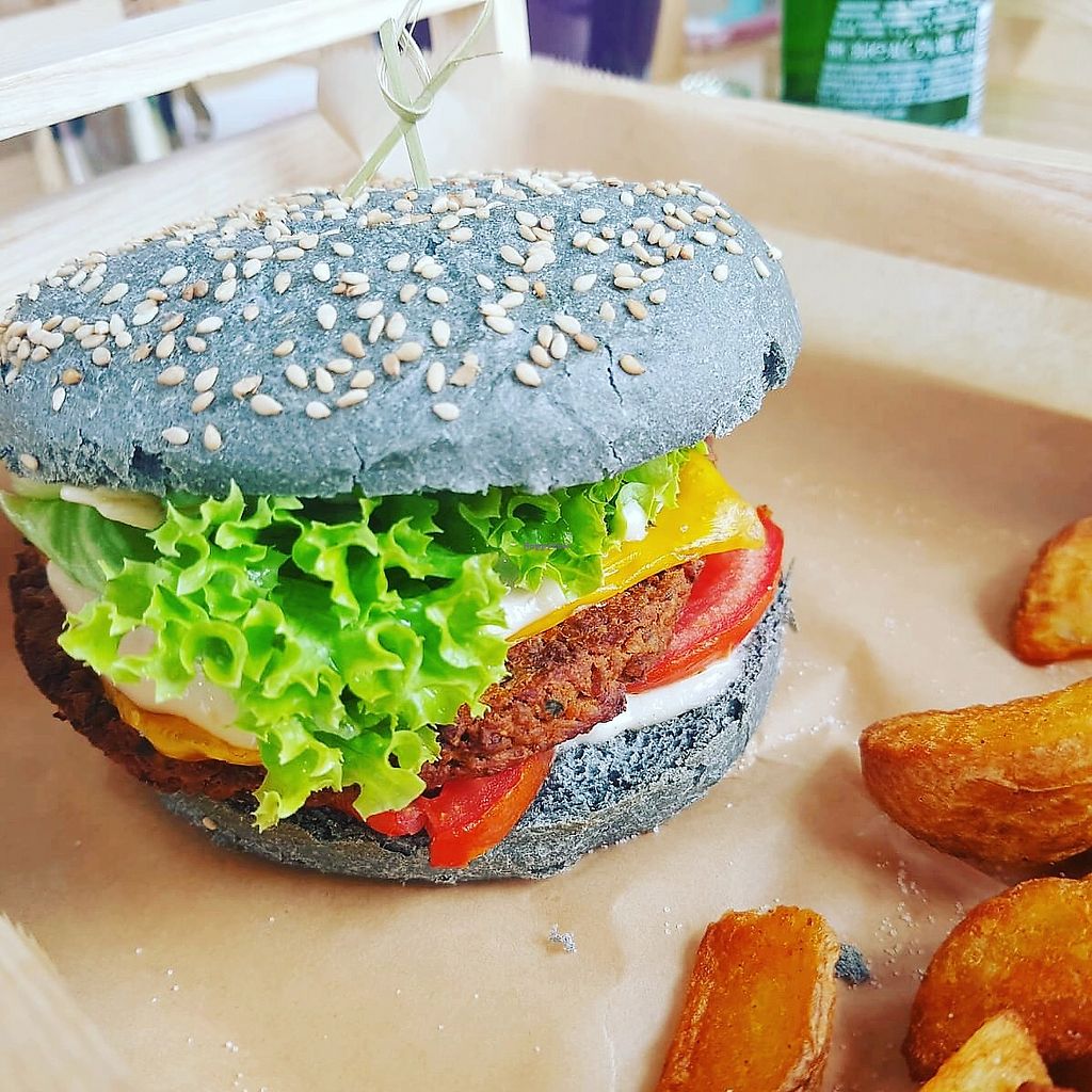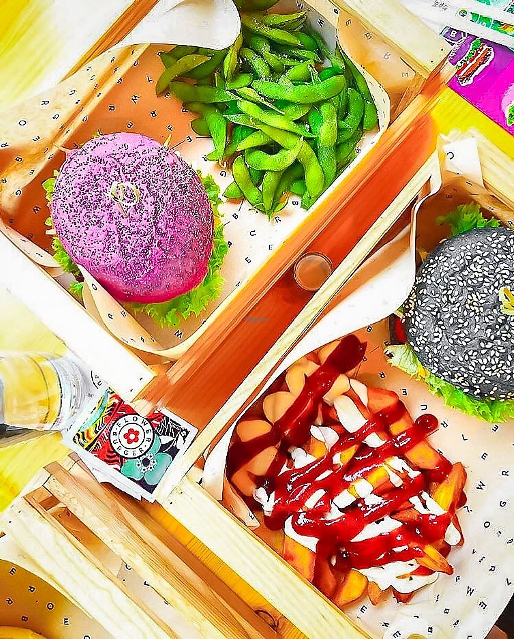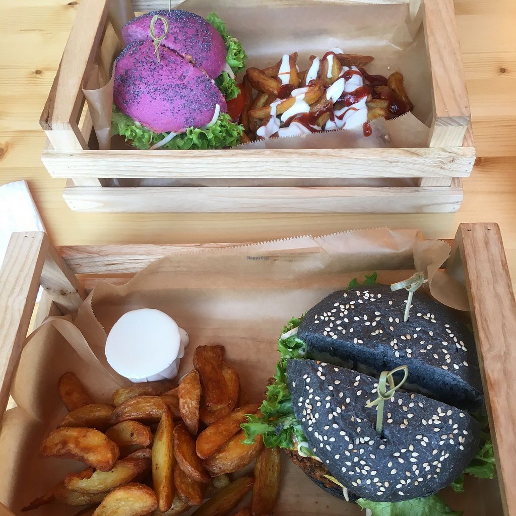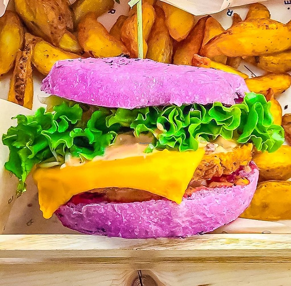 Flower burger with savory potatoes + flower mayo (really delicious!) aβ¦