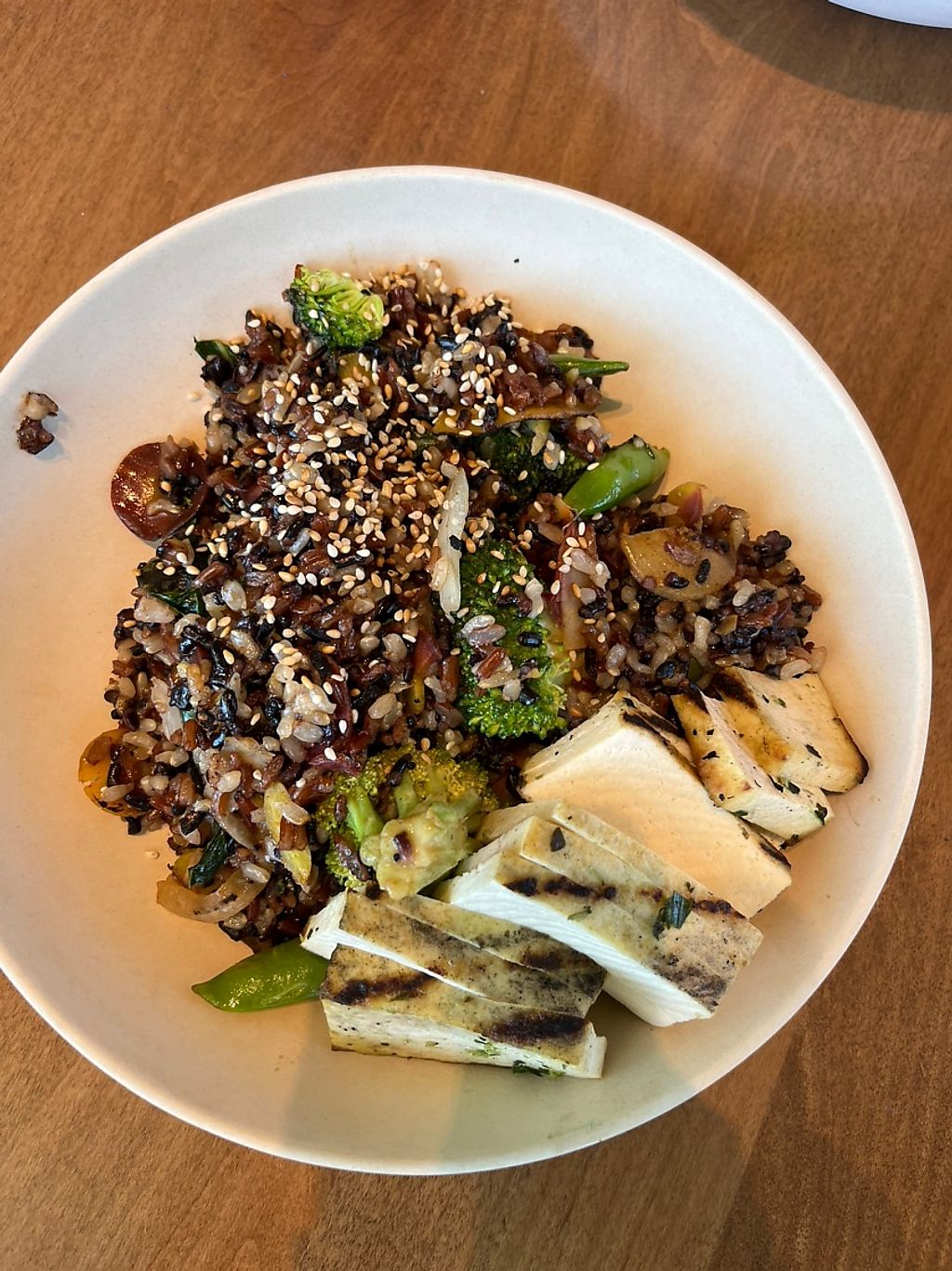 Mother Earth bowl with tofu and chocolate pudding