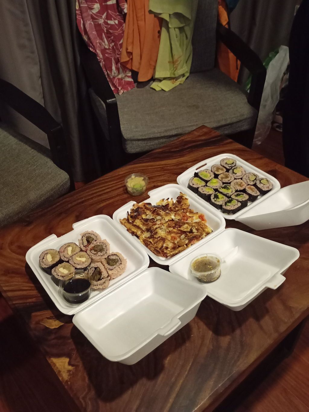 Sharing beer and sushi with the owner