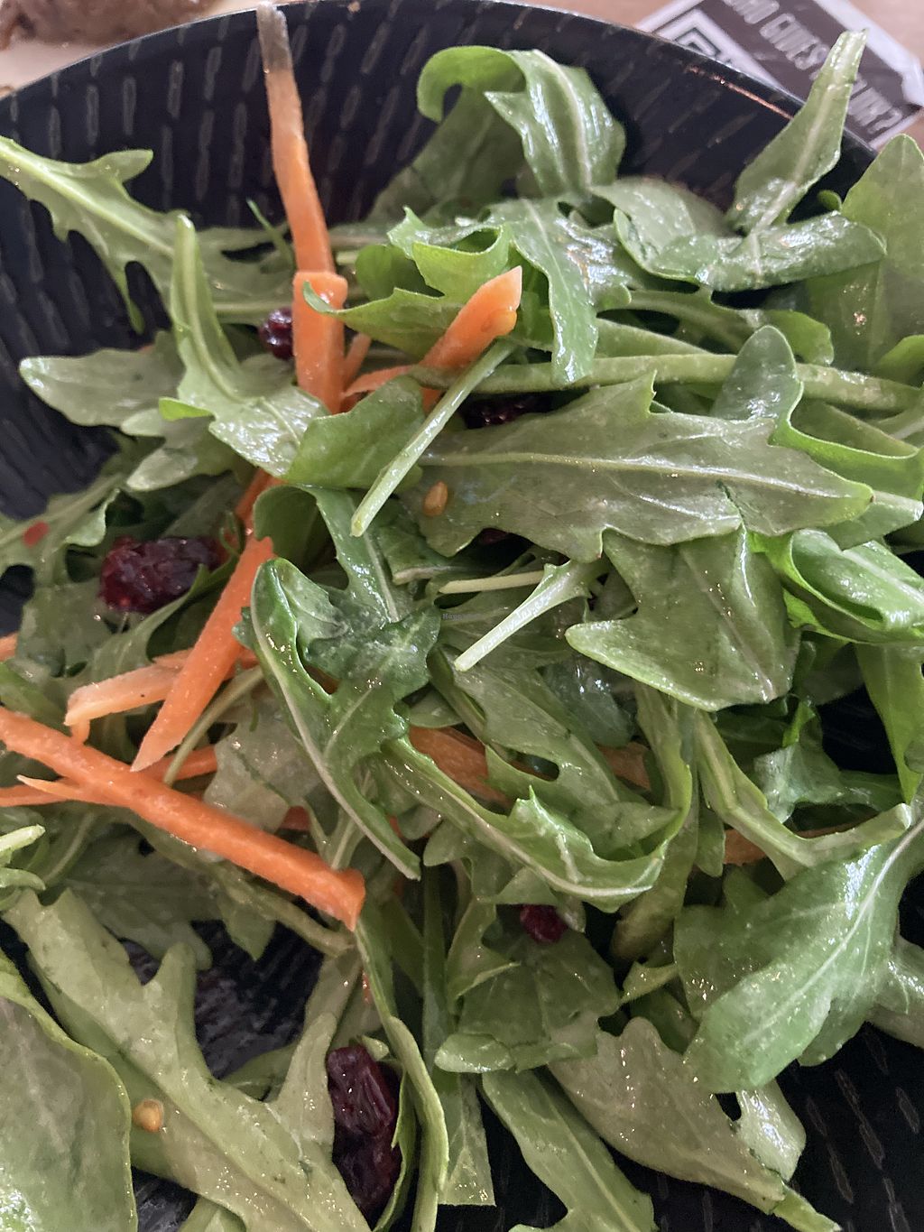 Lovely food, great service. Small plates and lots of vegan options so we tried a few! Even kids menu. The Mac n cheese was awesome. Very tasty. And the salad was super fresh with a nice light dressing. As you can see from the photo the mouse was dug into before I could photo it. Possibly the best mouse I’ve eaten even before I went vegan! And the sorbet was a great match.