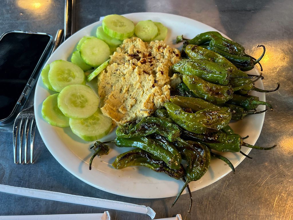 This place is amazing! Many items can be made vegan. We had the house made hummus with blistered shishito peppers and cucumbers. They were absolutely delicious. They also have vegan crust so the wood fired pizza is easily made vegan. They have dairy free cheese and tons of fresh, local toppings. The wild mushroom blend is fantastic. Super friendly staff. Really cool vibe. This place is a must stop.