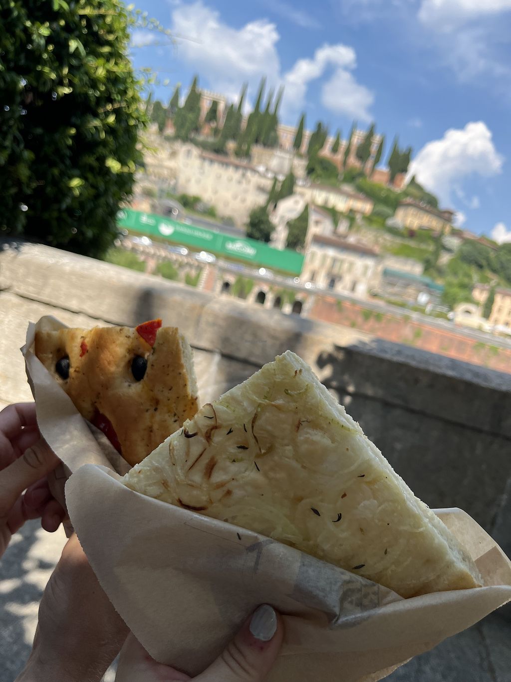 Great little Focaccia shop near the 'Ponte Pietra'. A few vegan options are available that all looked very delicious. They're not labeled, but you can see what you're ordering to make sure it doesn't have Cheese / Meat on it. I had the 'Pomodoro e Origano' at it was super tasty! Price is very affordable too!