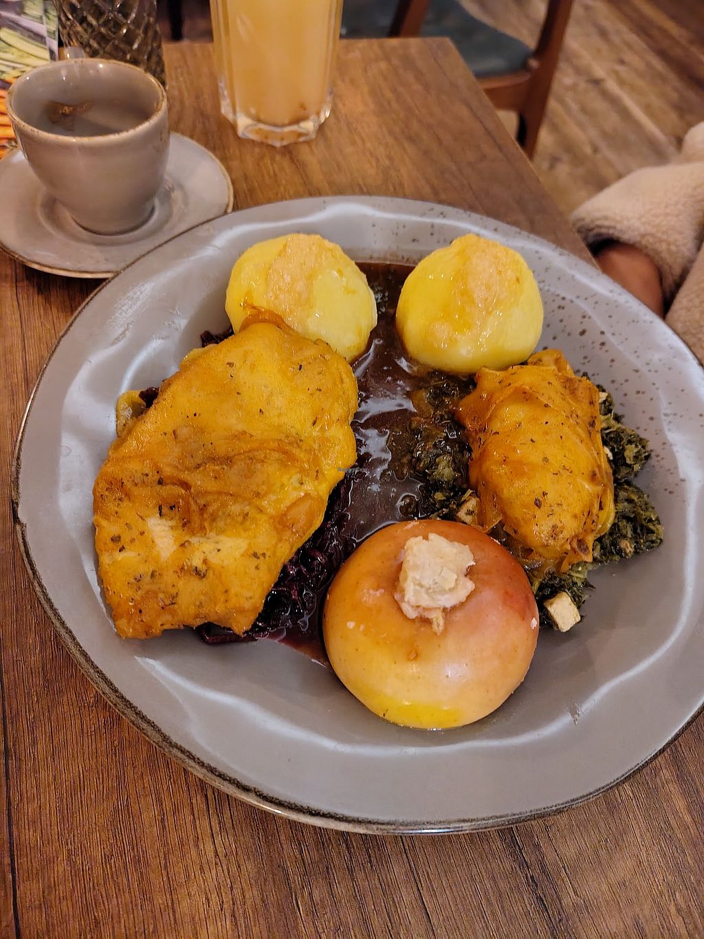 Giving this 4 out of 5 because the staff are just ok. The food is quite pricey but if you want vegan German food this is the best option I think. They can cater to larger groups like 15 people.