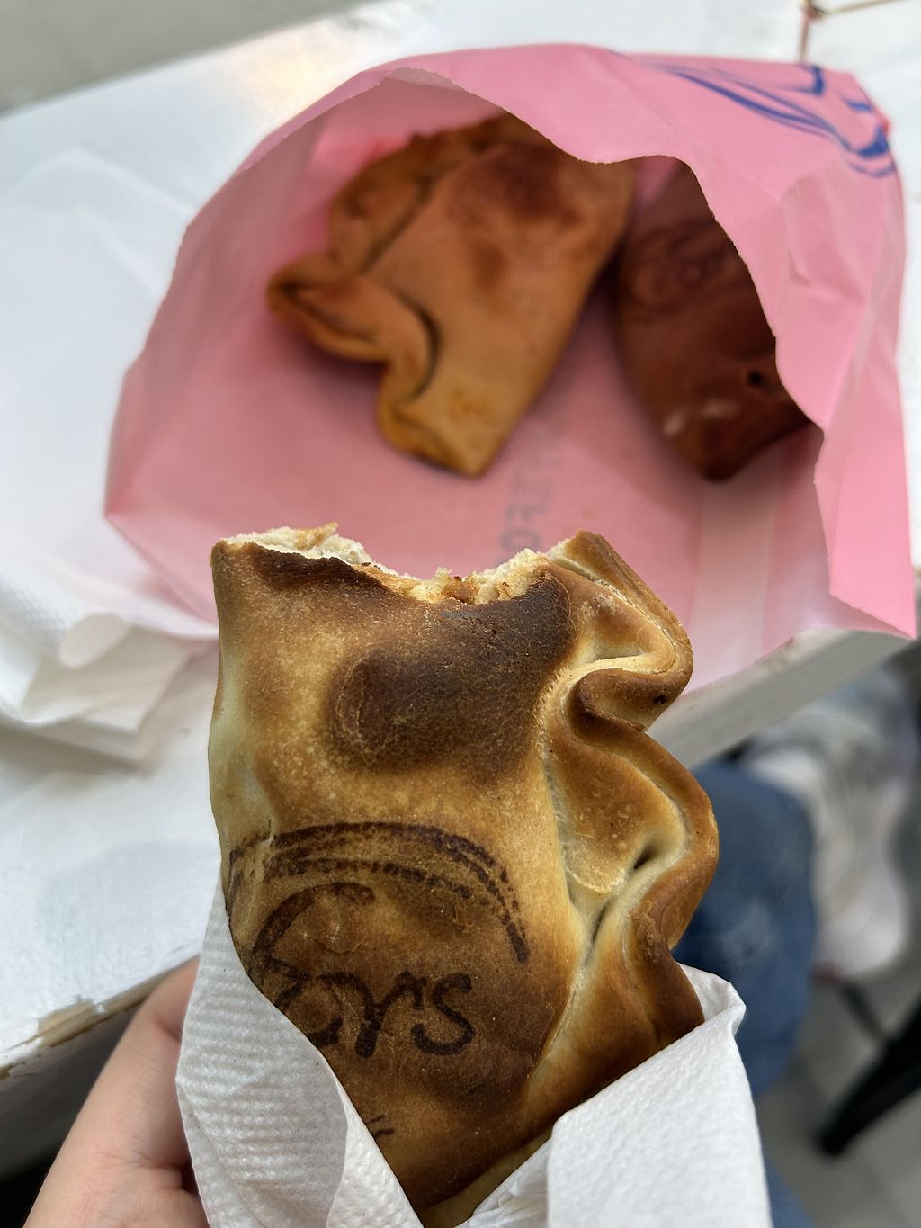 I tried 3 savory and 1 sweet empanada. The fillings are a redemption because the crust it dry as dust and hard as a rock. I have had vegan empanadas in Spain before and they managed the crust very well so it is possible.