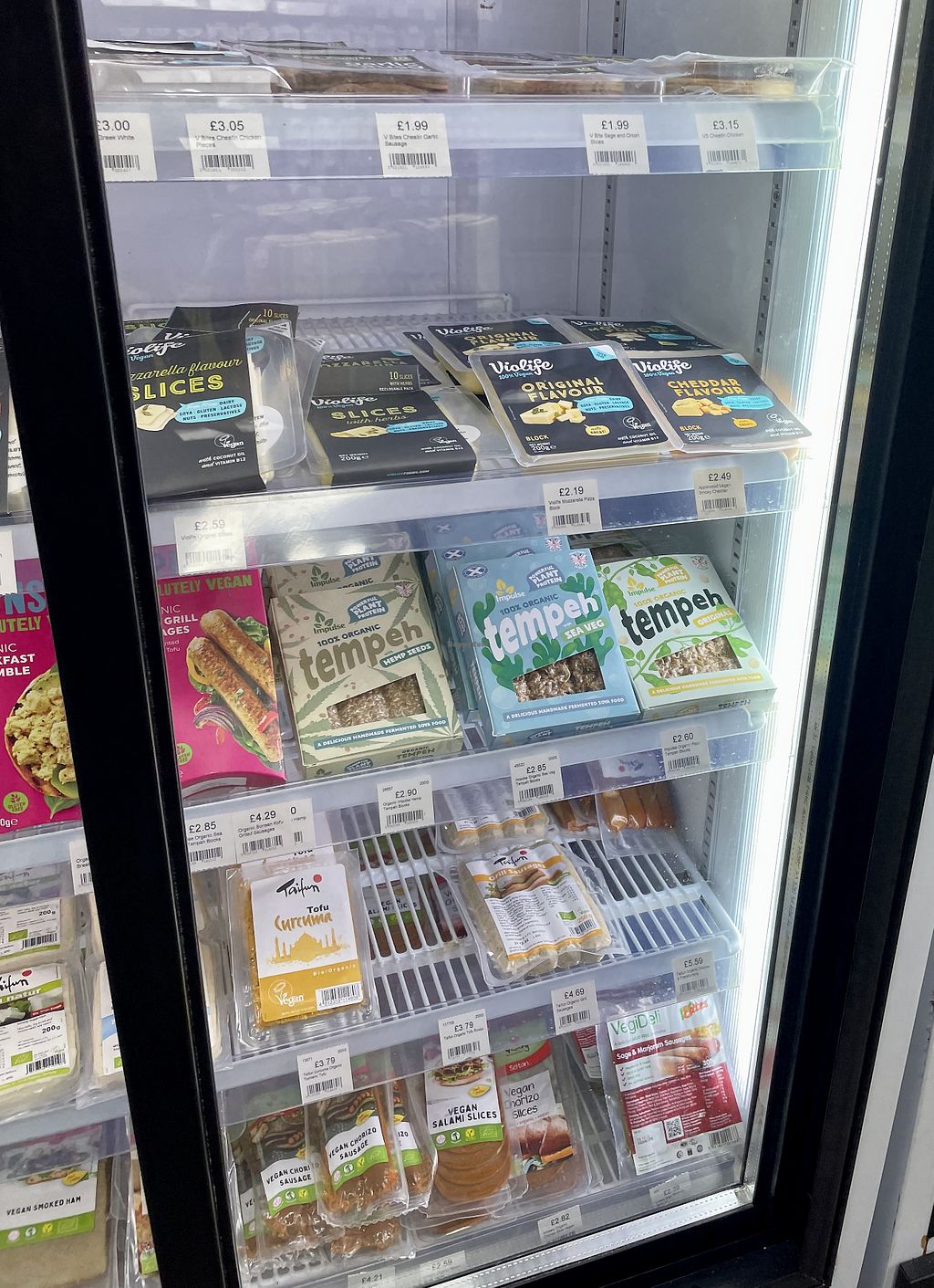 The refrigerated section included a decent selection of vegan cheeses