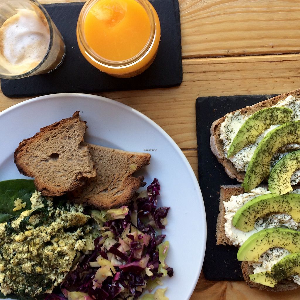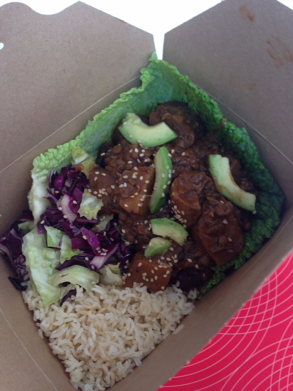 Main dish of the day: eggplant and potato curry with avocado, coleslaw…