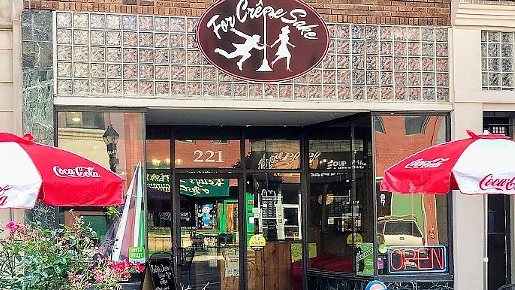 Serves meat, vegan options available. Counter service restaurant serving sweet and savory crepes with options for vegan batter, butter, cheese, and whipped cream. Also serves side salads, fruit, coffee, and tea. Open Tue-Sun 8:00am-3:00pm, Thu-Sat 5:00pm-9:00pm. Closed Mon.