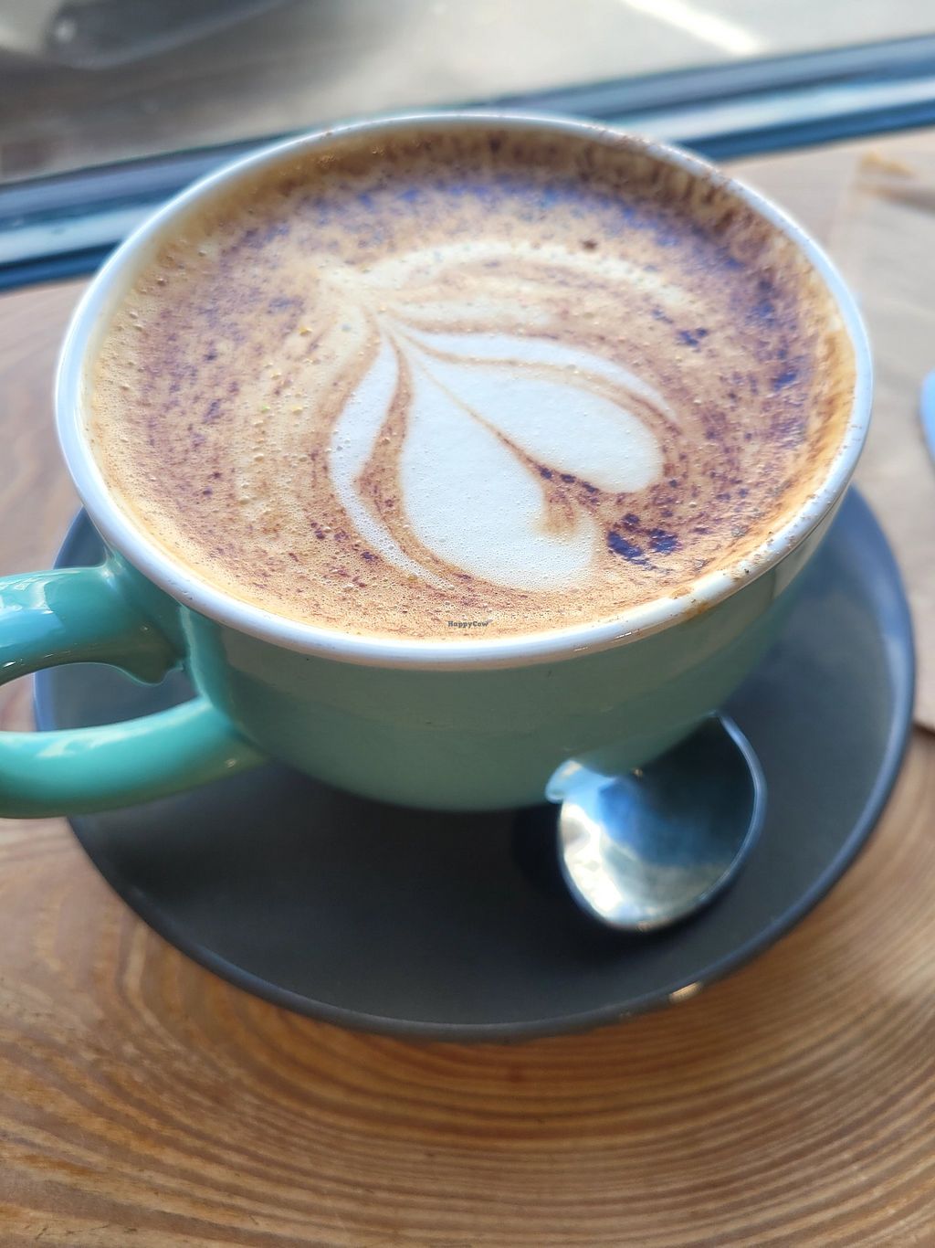 Sehr guter Kaffee mit zwei Pflanzenmilchen zur Auswahl und auch vegane Kuchen. Geschmacklich ausgezeichnet.