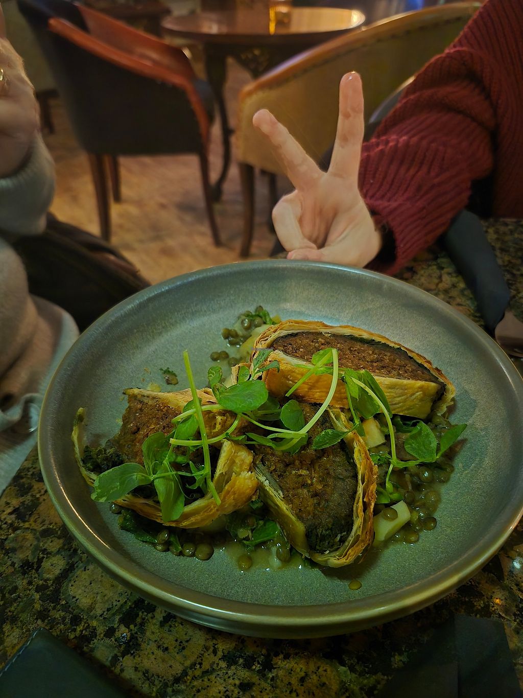 Lovely venue for a birthday celebration. We had the vegan burger and vegan haggis and mushroom wellington, both were excellent. Good service and friendly staff.