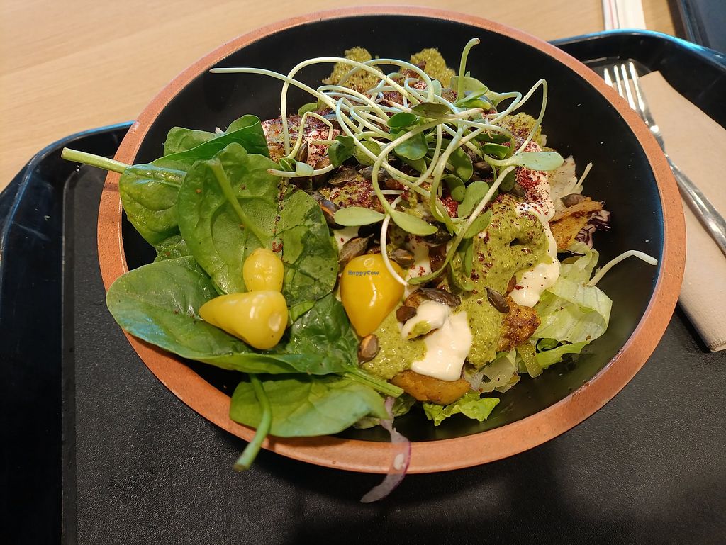 Vegan bistro chain with a focus on international comfort food. Order at the counter. Also has grab-and-go items available. Choices include bowls, burgers, fish & chips, kebab wrap, Panang curry, and schnitzel. Uses 100% bio-degradable packaging. Open Mon-Sun 09:00-21:00.
