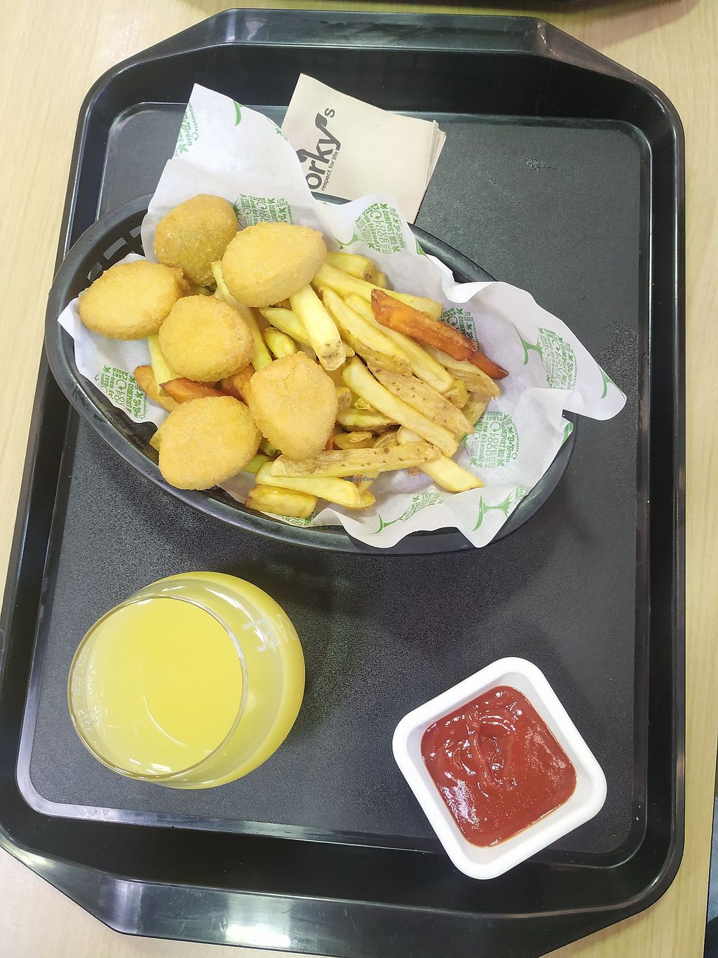 The chick nuggets were pretty good, the different sauces, too. The side potatoes are good as long as they are hot, but sometimes they are served lukewarm.