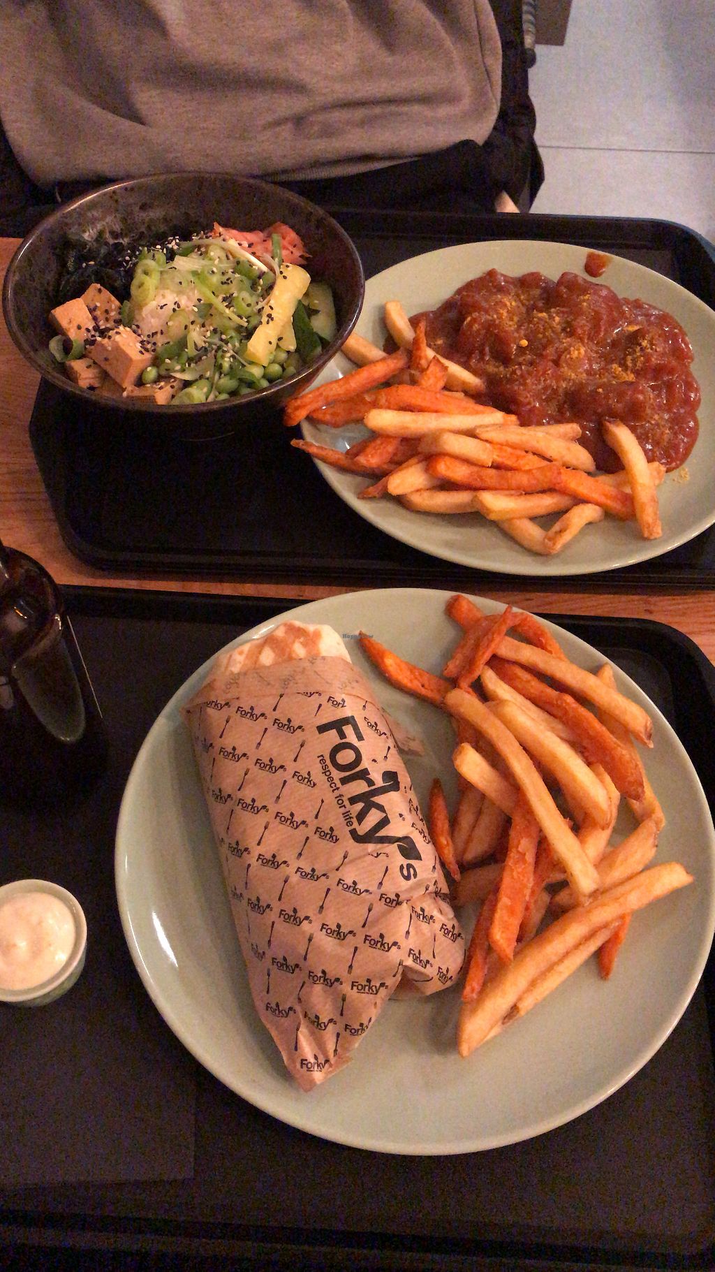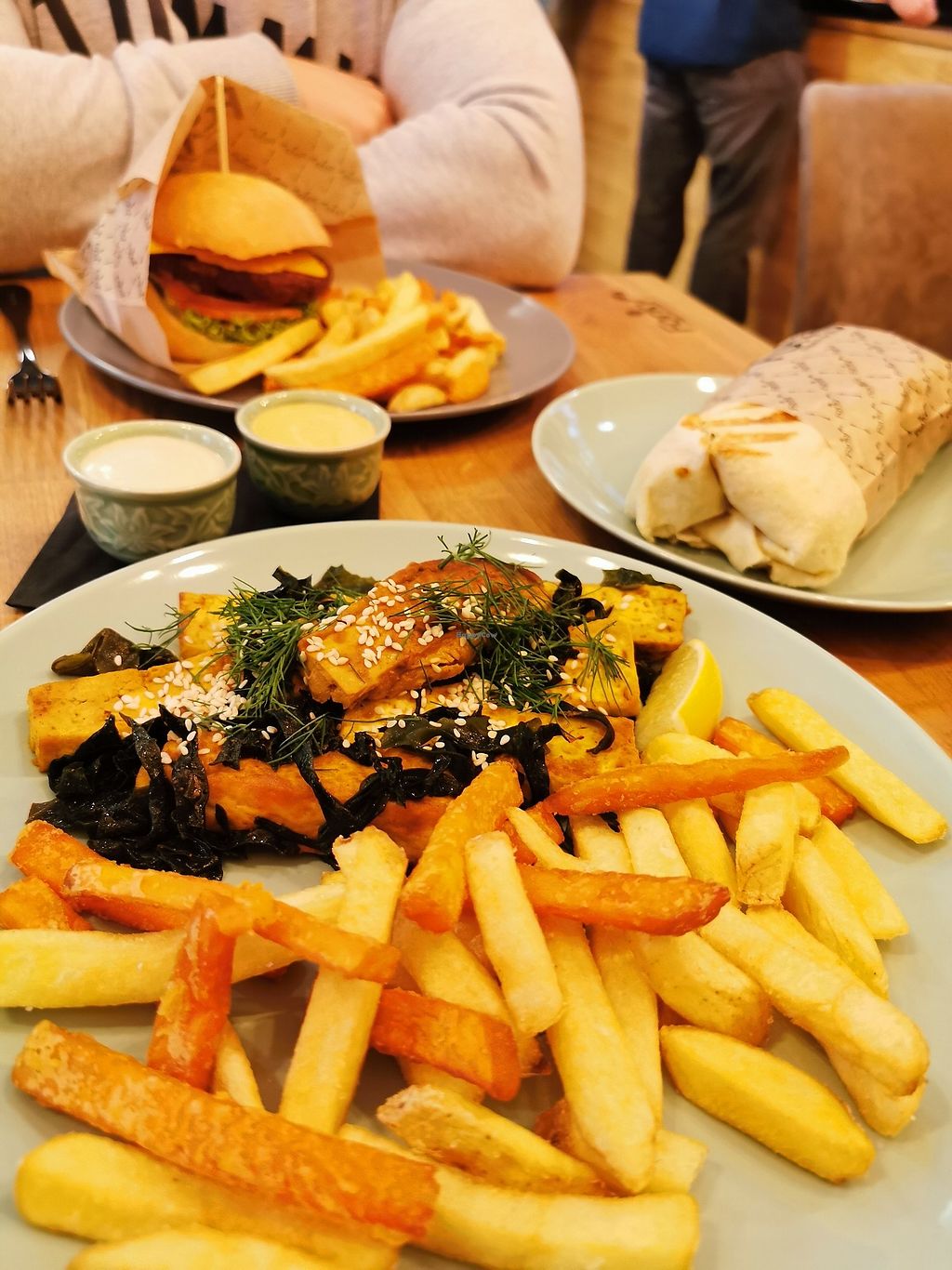 Nofish and chips, Cheez burger, kebab wrap