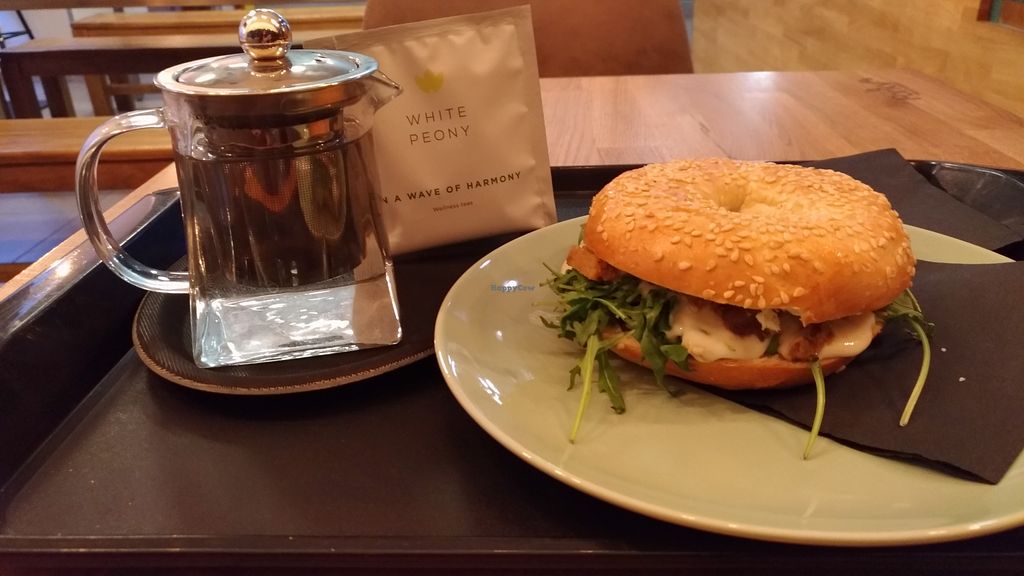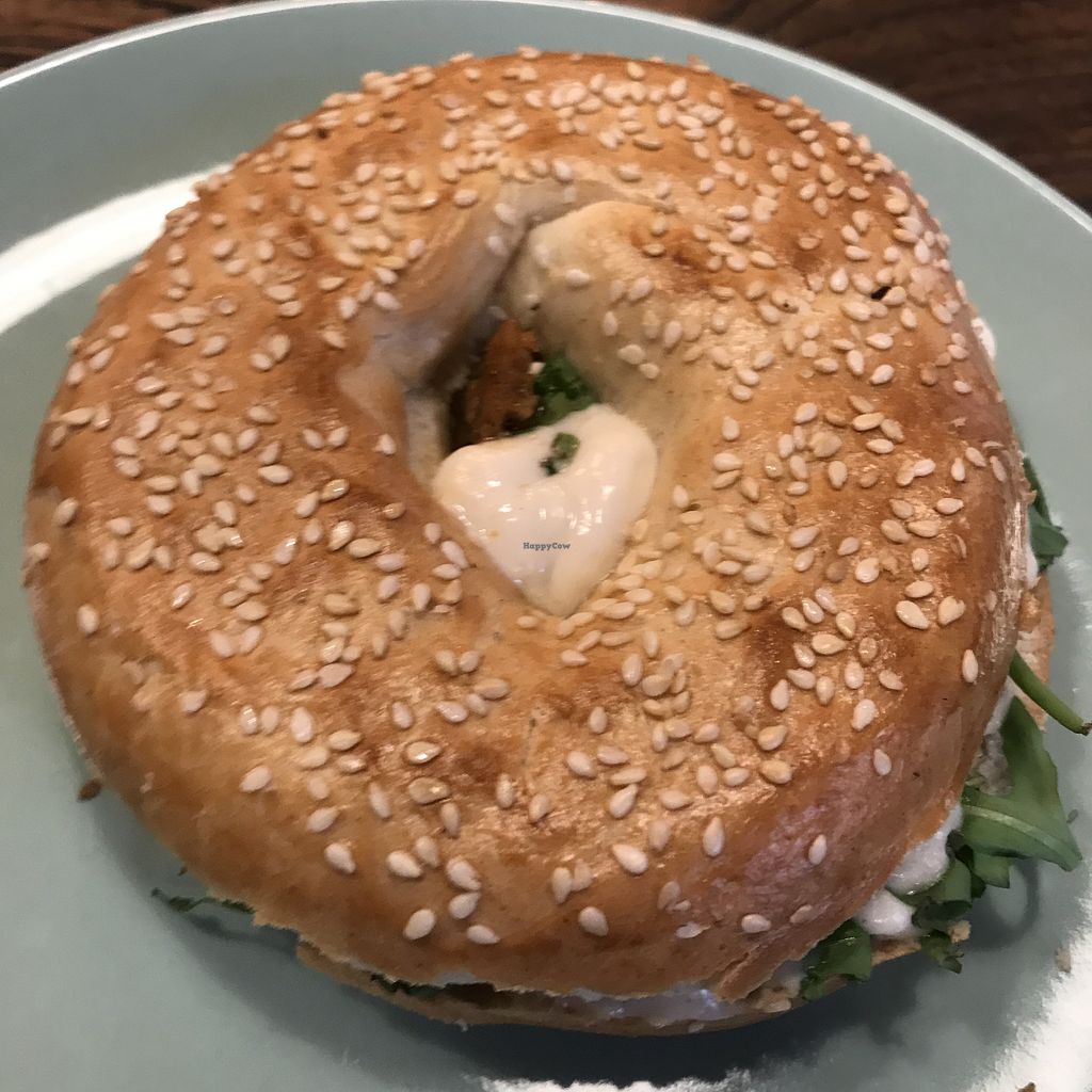 Seitan bagel and a cuppa