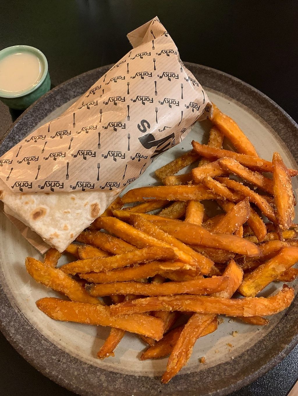 chicken wrap w/ sweet potato fries