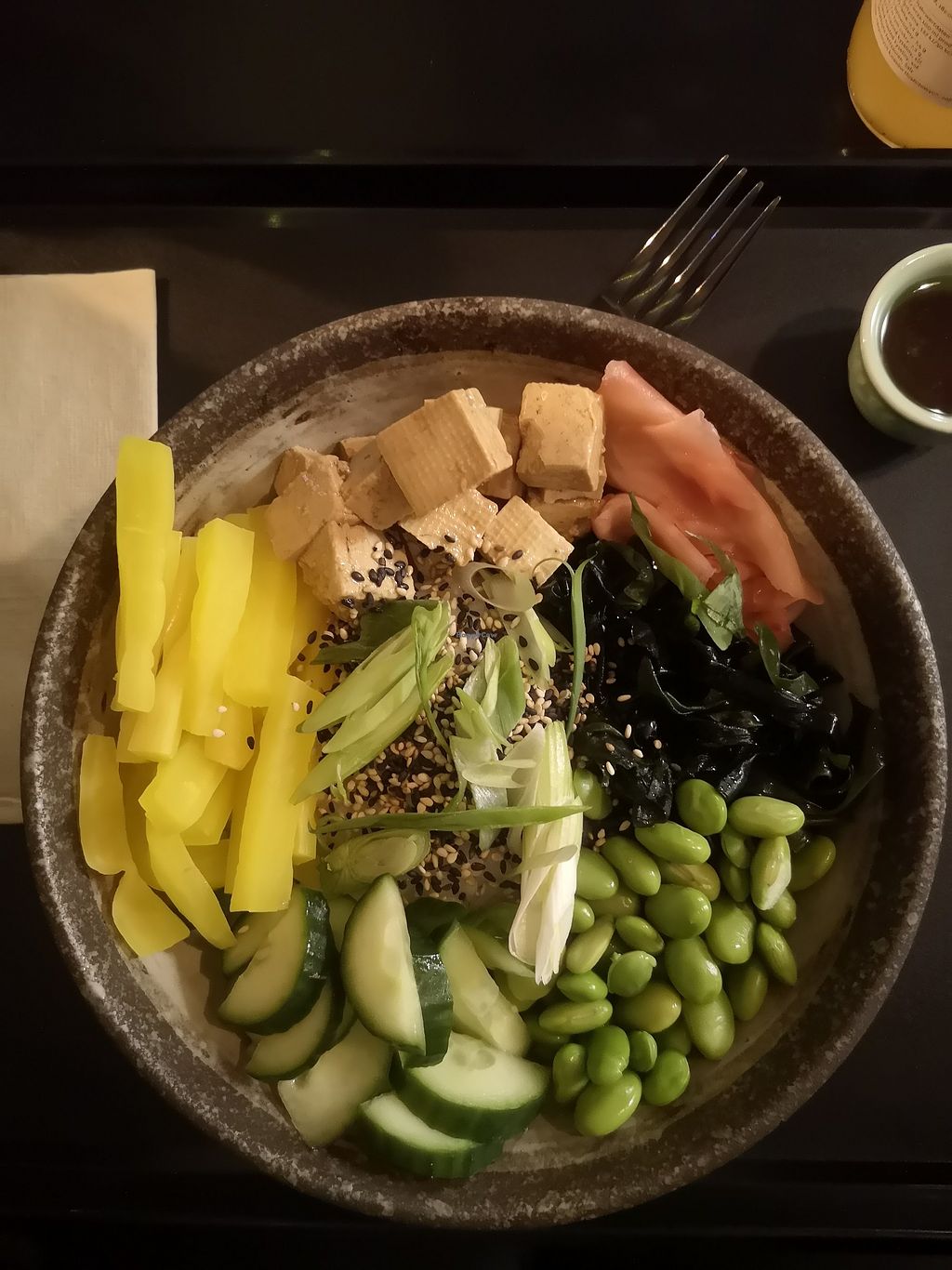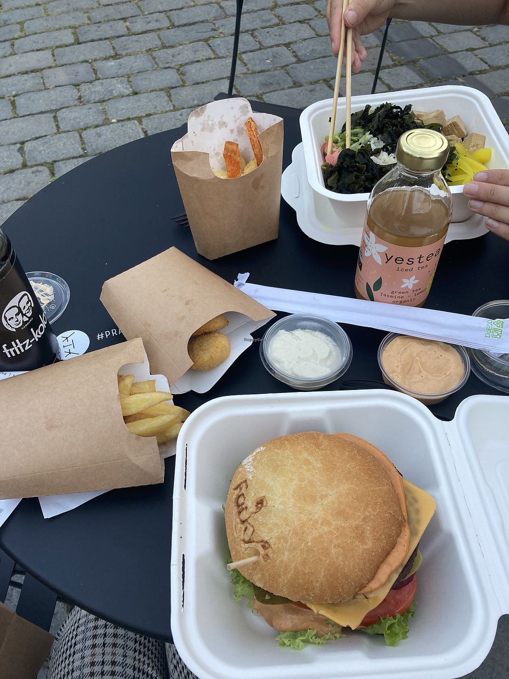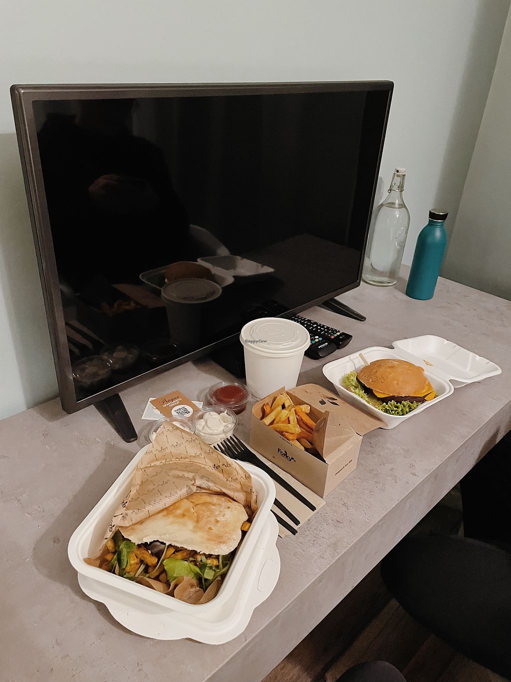 Spicy schwarma, ginger lemonade and vegan chicken nuggets.