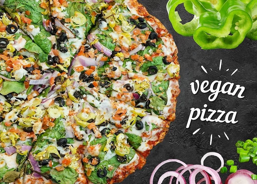 Serves meat, vegan options available. Takeaway pizza shop with vegan cheese alternative and mock pepperoni available with an additional upcharge. Vegetarian pies can be made vegan upon request. Open Mon-Thu 10:00am-9:00pm, Fri 10:00am-10:00pm, Sat-Sun 10:00am-9:00pm.