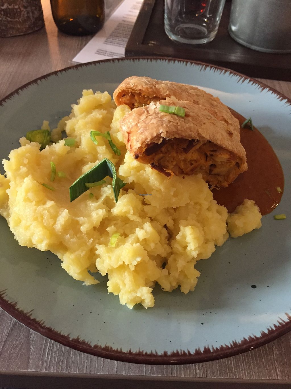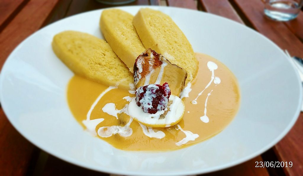 Read moreHad a Meal from daily menu - puff pastry roll filled up with sauerkraut and smoked tofu served with mash potatoes. Tasty. Only the meal was 155 czk (huge portion tho!;) with drink 215, which is definitely on the pricey side of Prague's lunch options