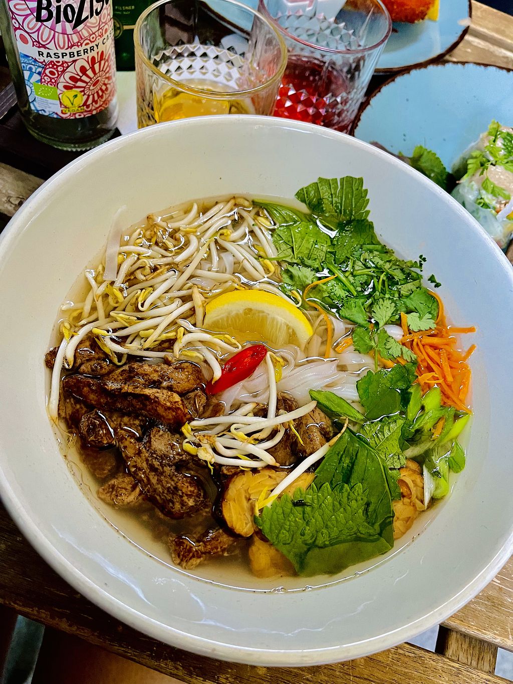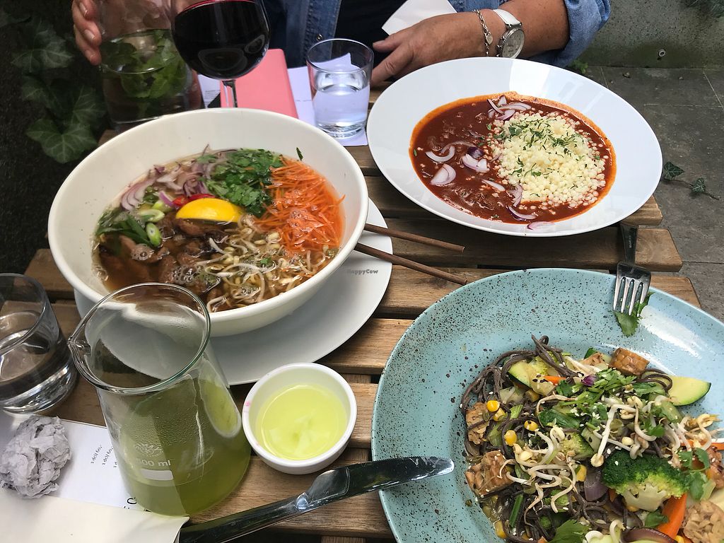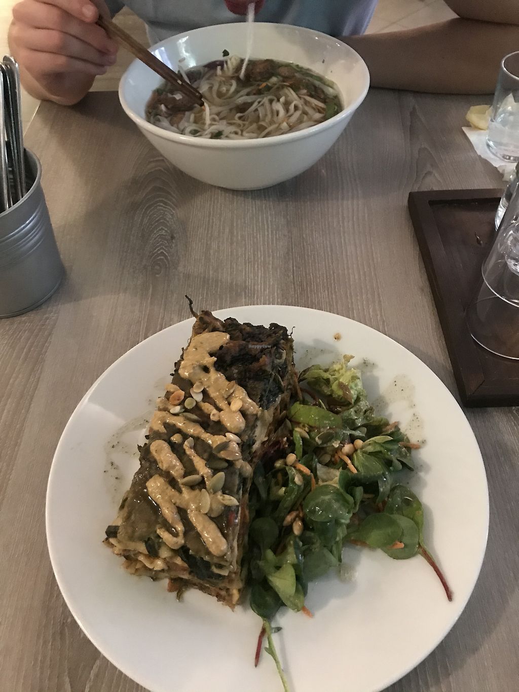 good quiet, all-vegan place. the drinks menu is great including special drinks like iced raspberry matcha. we had the potato gnocci which tasted amazing. the pho was okay, nothing to get excited about. portions are huge and staff is very friendly.